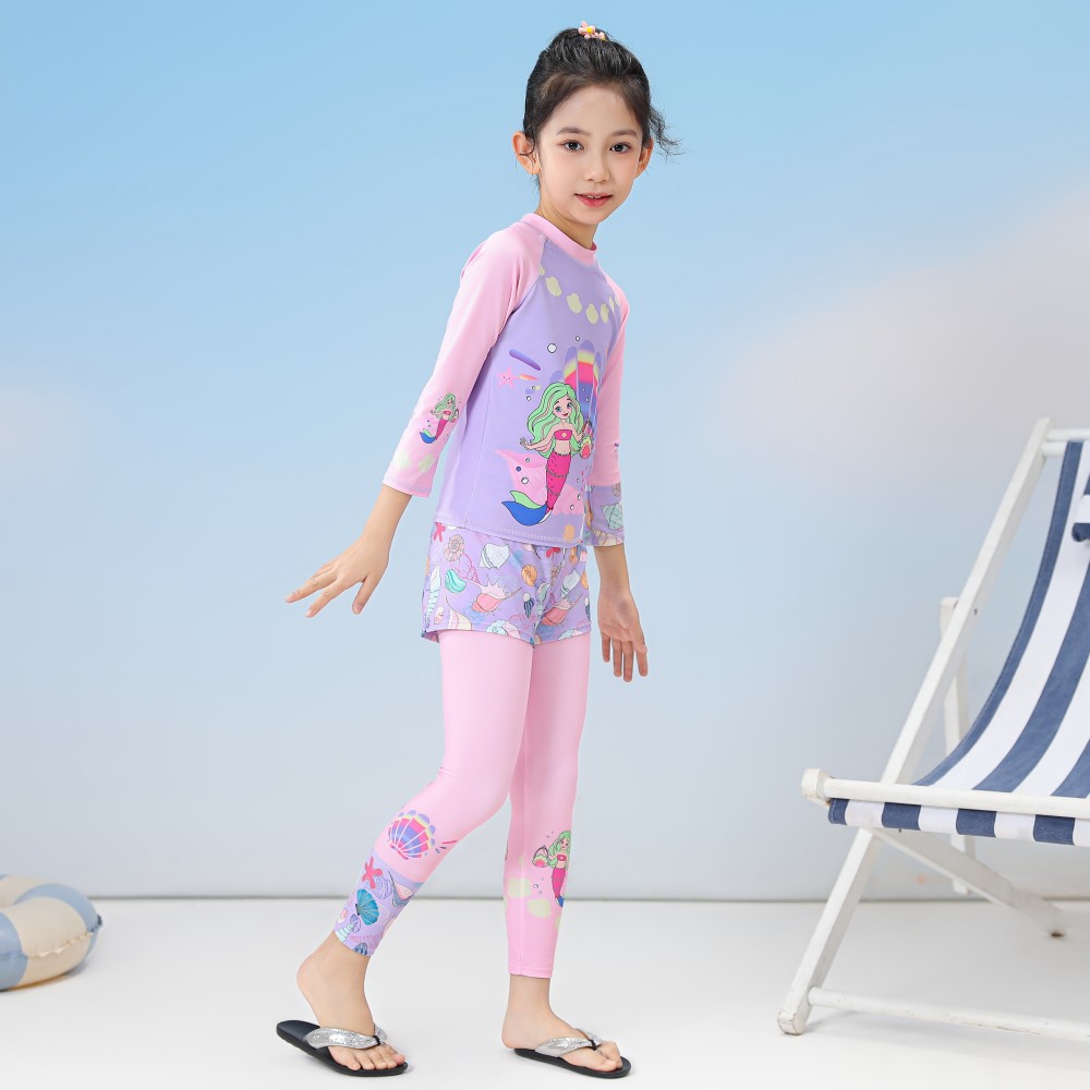 어린이 수영복 스플릿 여아 긴팔 바지 자외선 차단제 수영복 아기 소녀의 보수적 인 수영복