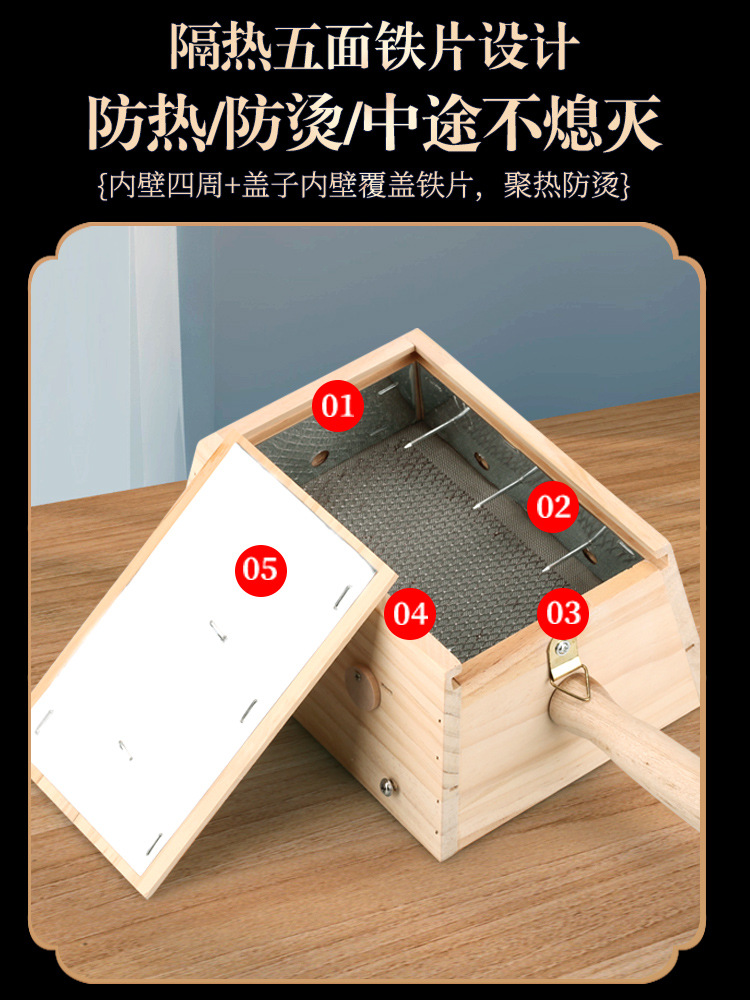 목조 6바늘 걸이 뜸 상자, 휴대용 뜸, 대형 자궁 감기 가정용 기기, 따뜻한 뜸, 훈증 허리 및 복부 뜸 상자, 전신