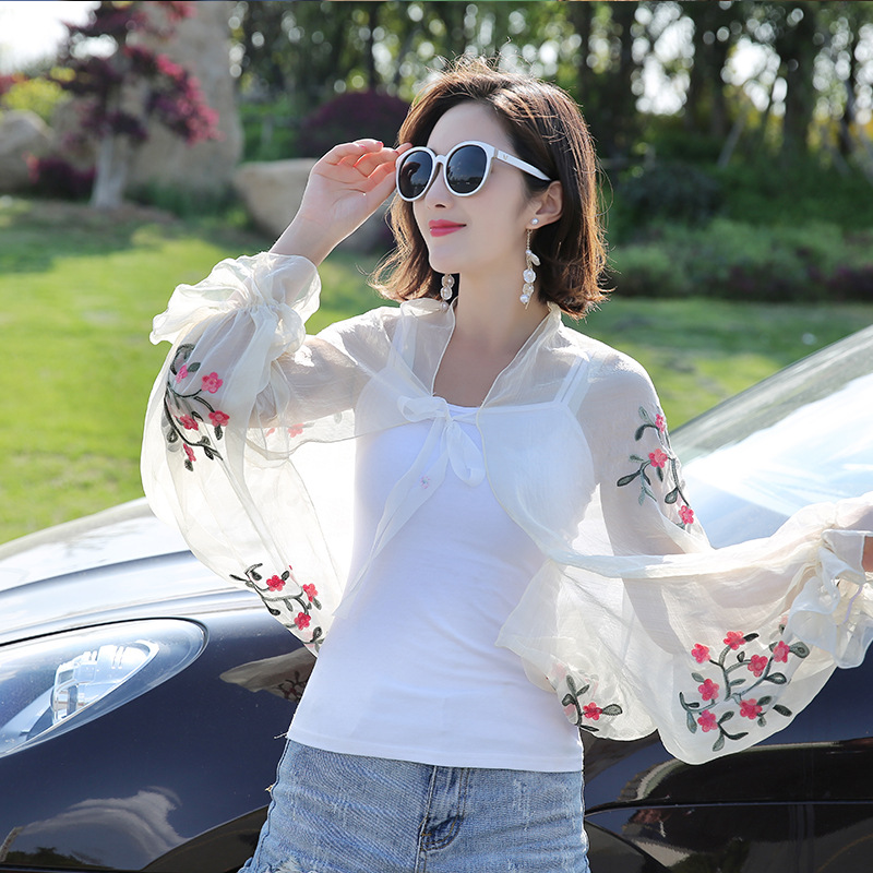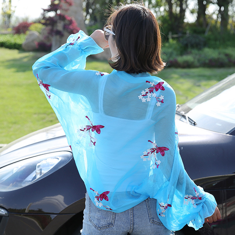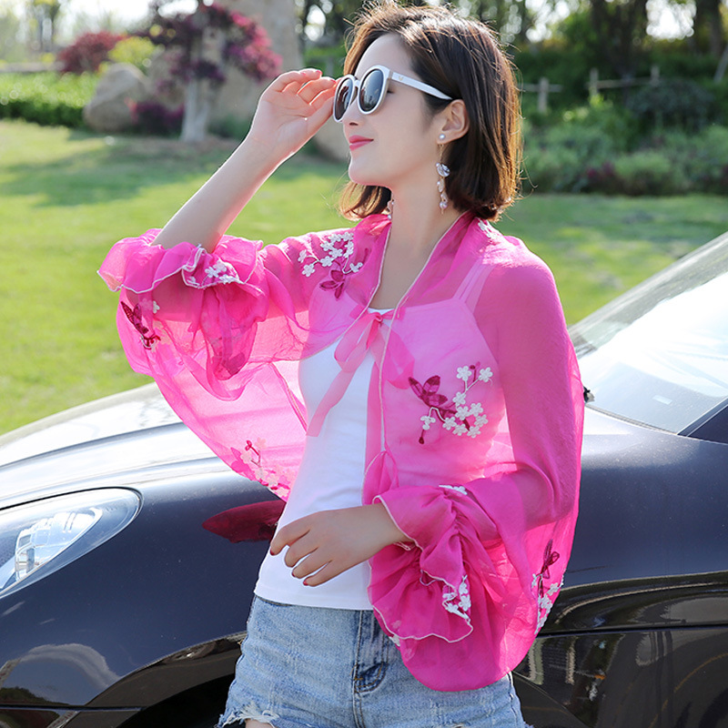 새로운 비치 타올 해변 이중 사용 라이딩 태양 보호 의류 여성용 쉬폰 운전 실크 스카프 자수 숄 여성용 케이프 여름스토어 가기