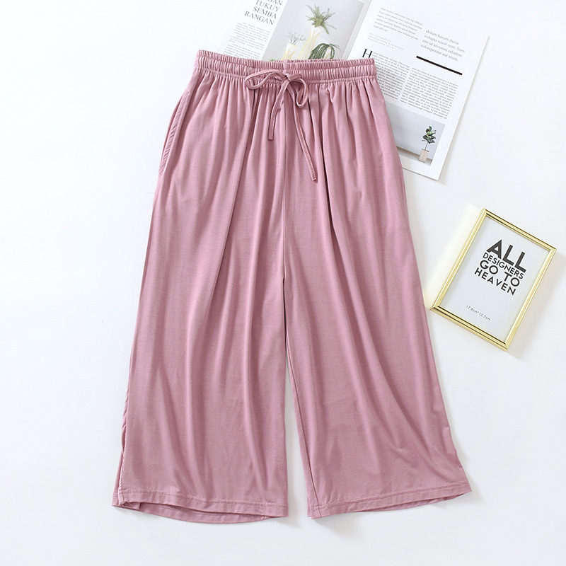 여성용 여름용 루즈핏 얇은 모달 7부 바지 단색 홈웨어 바지 와이드 레그 플러스 사이즈 홈 바지 아이스 실크스토어 가기
