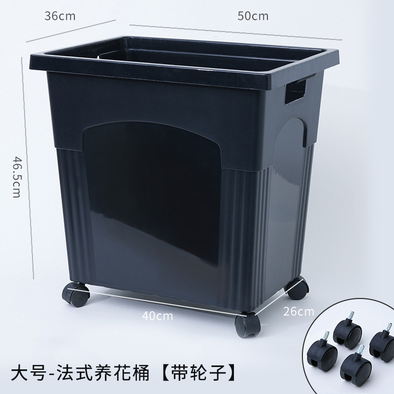 롤러가있는 프랑스 스타일 꽃 양동이 큰 꽃 꽃 양동이 두꺼운 이동식 장미 플라스틱 양동이 꽃 가게