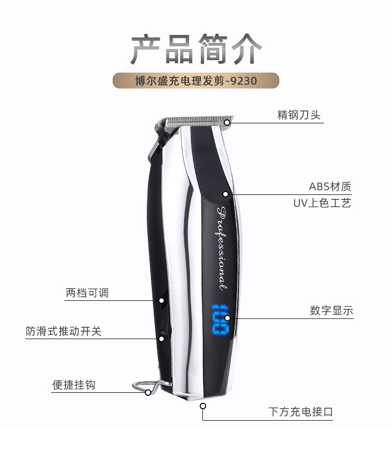 보어셩 이발기 본체는 충전식 및 플러그인 사용이 가능하며, 2단 속도 조절이 가능한 LCD 전기 이발기입니다.스토어 가기