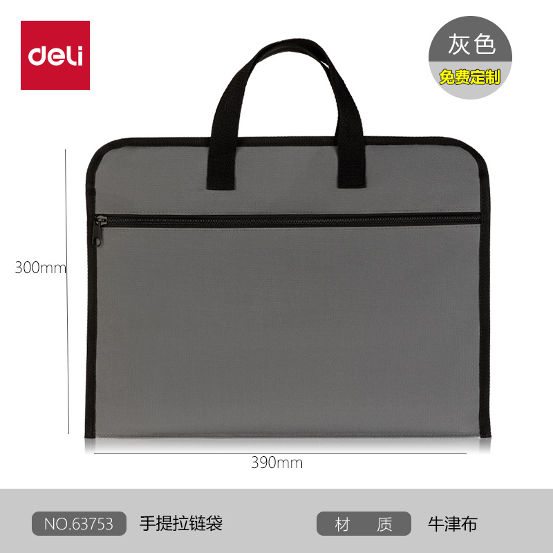 델리 63753/63754 스토리지 오피스 가방 지퍼 파일 가방 간단한 휴대용 인쇄 가능한 로고