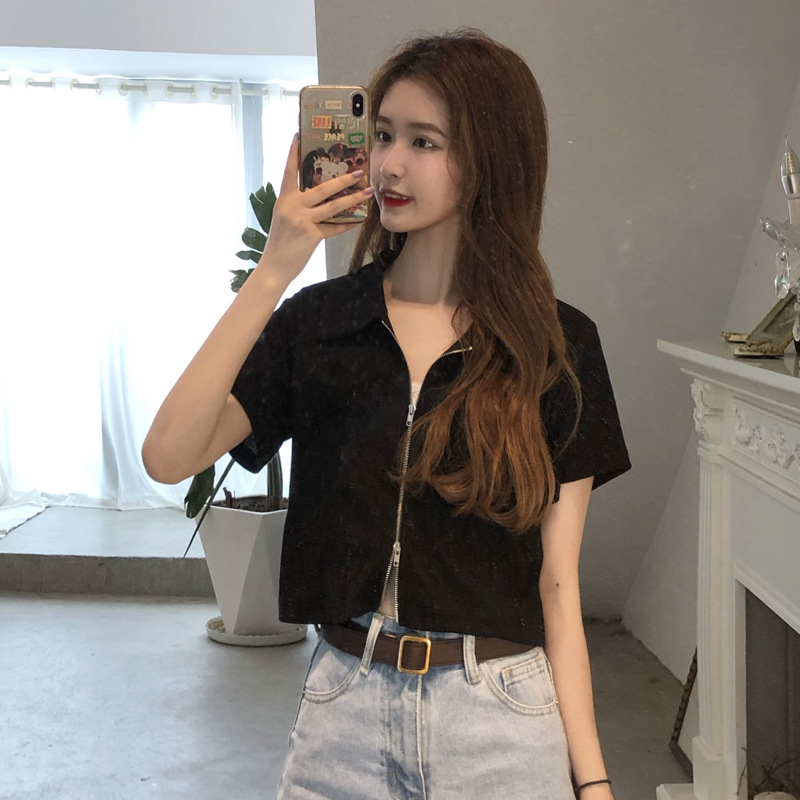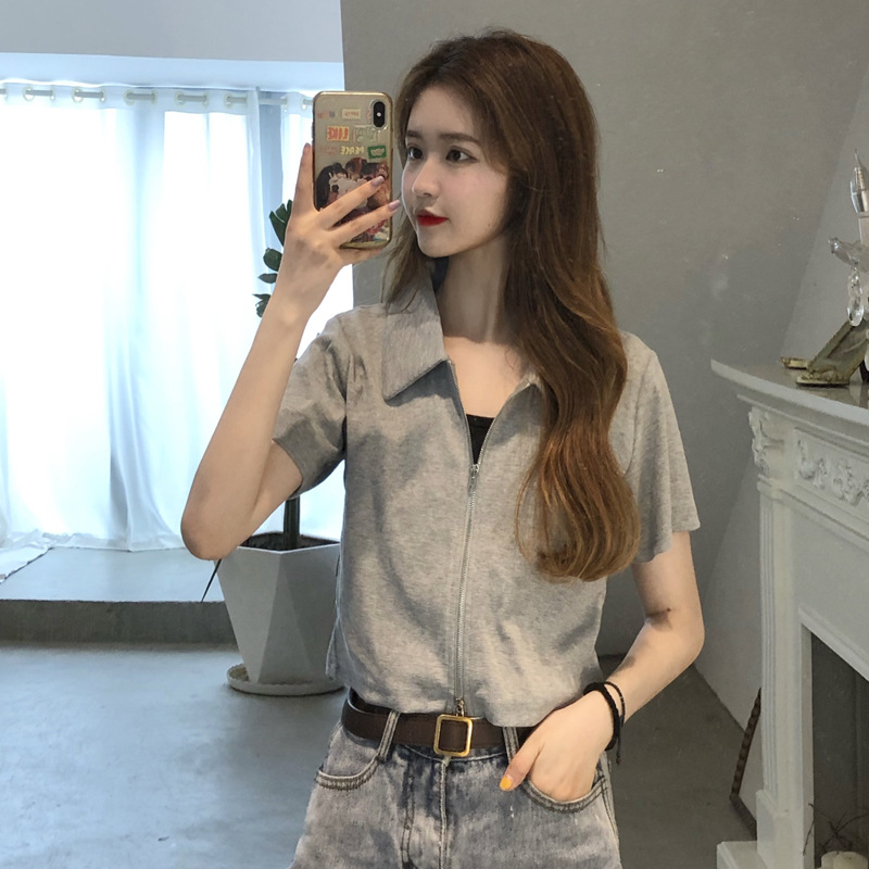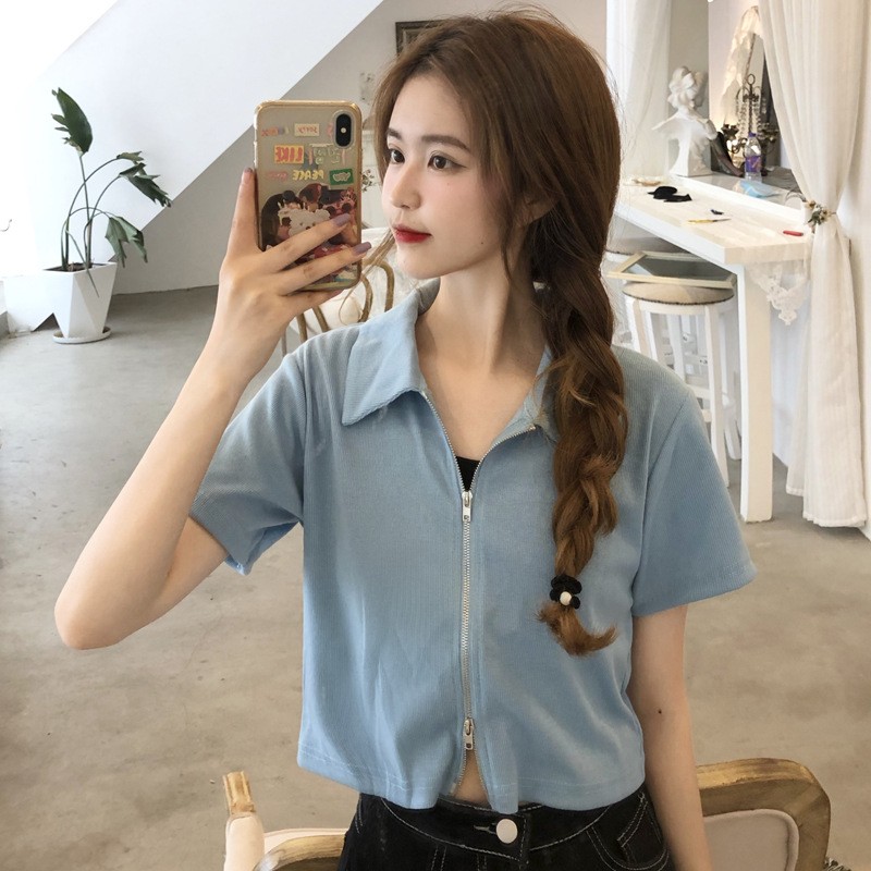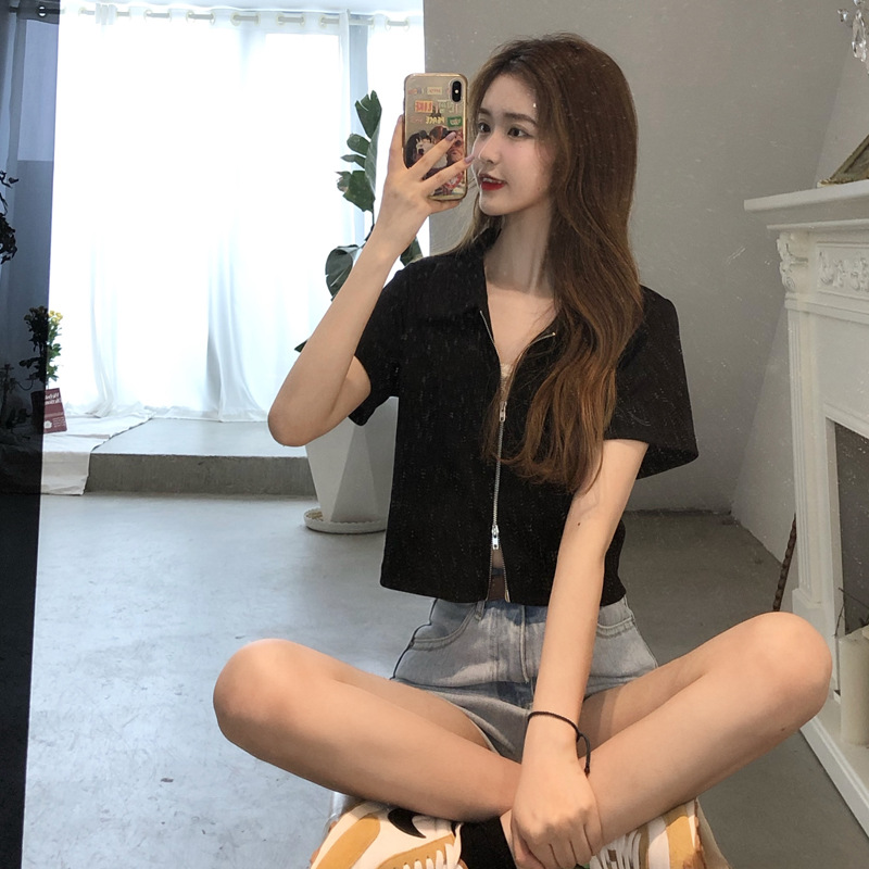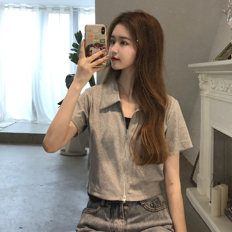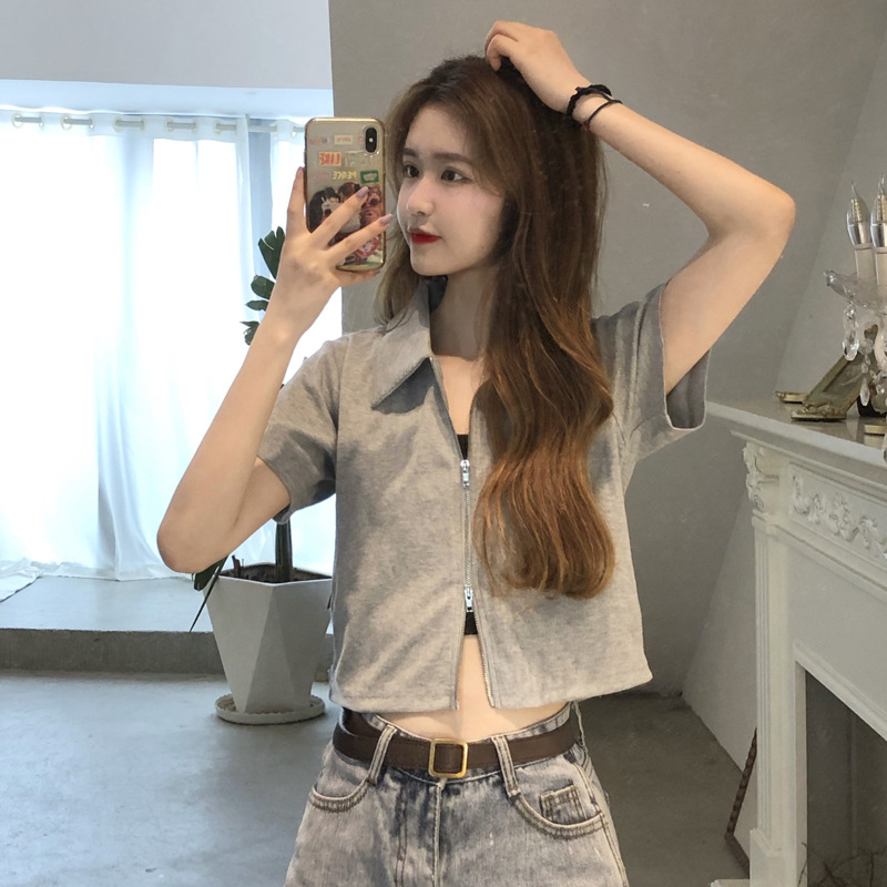 여름 한국판 2026 신상 여성복 슬림핏 반팔 티셔츠 여성용 짧은 지퍼 셔츠 스몰탑 자켓스토어 가기