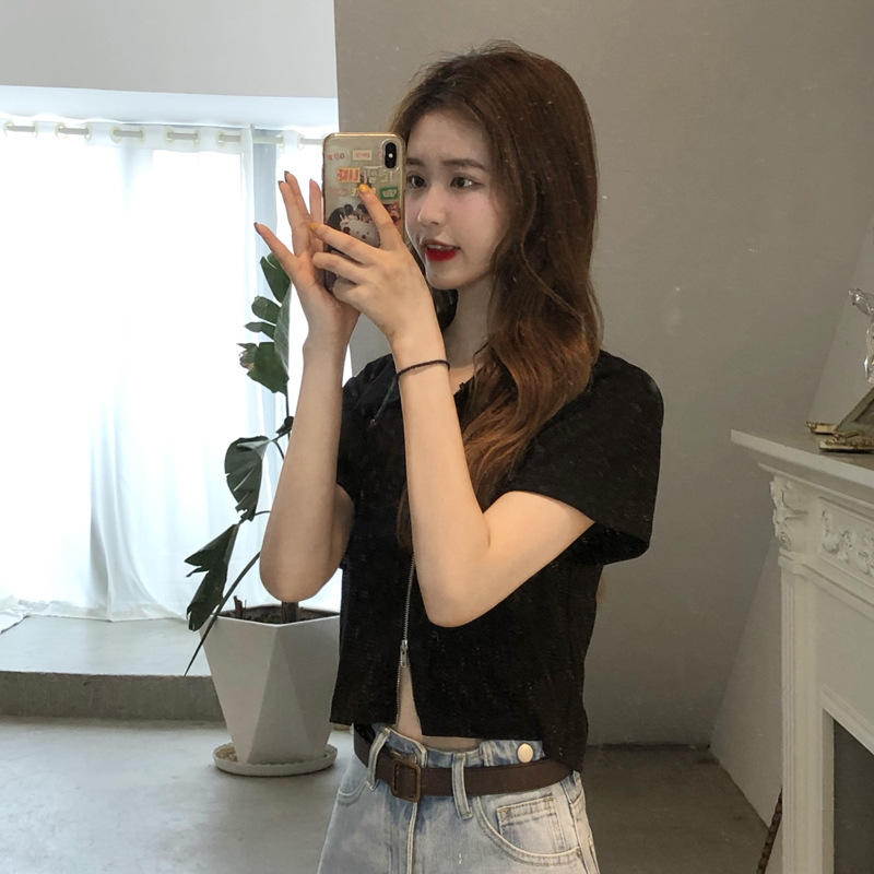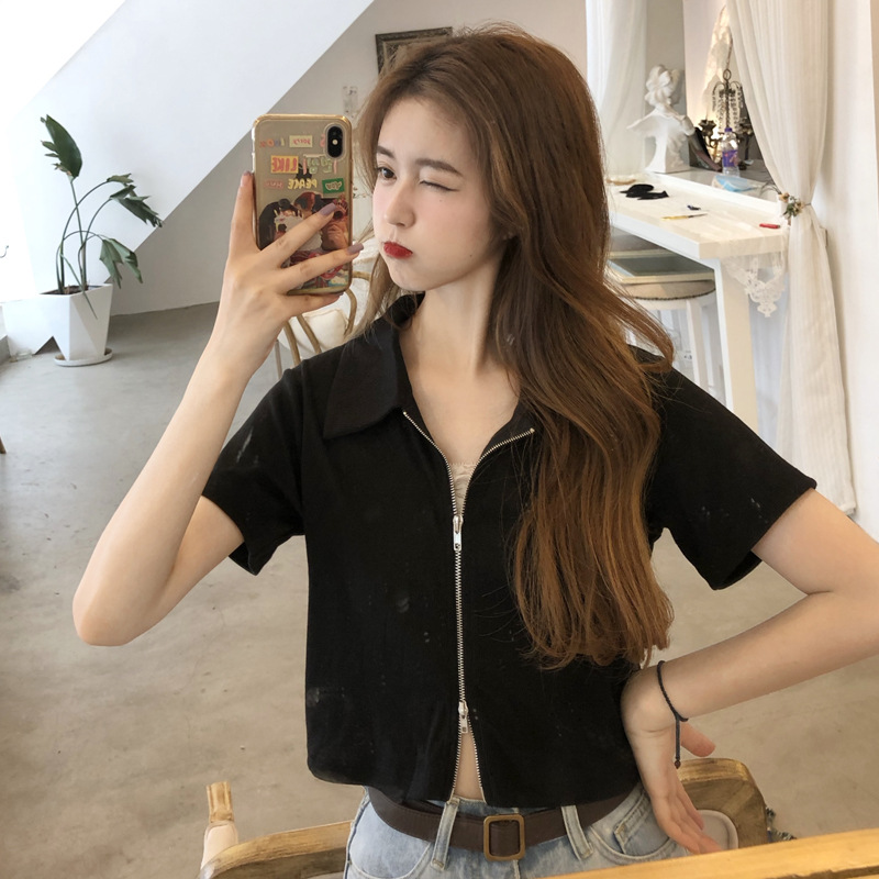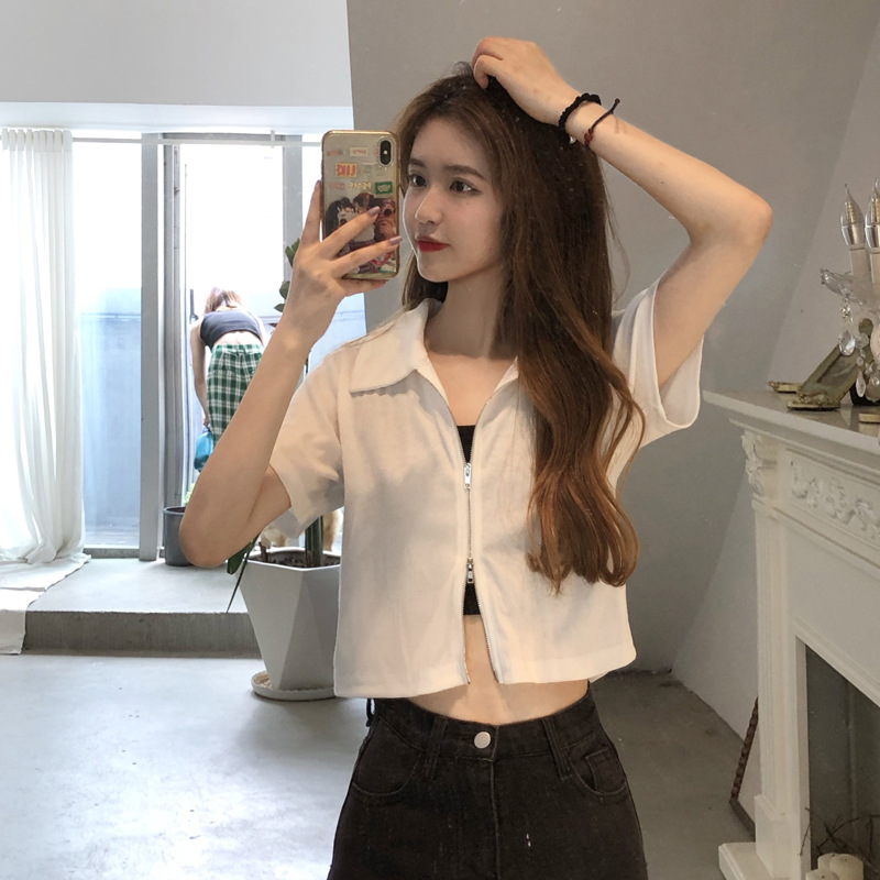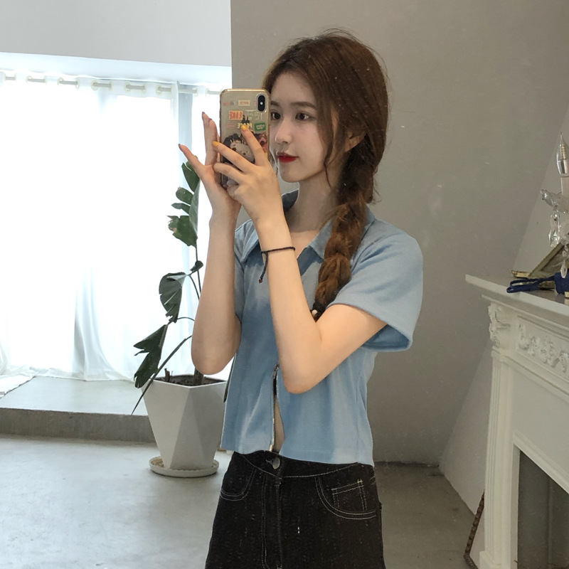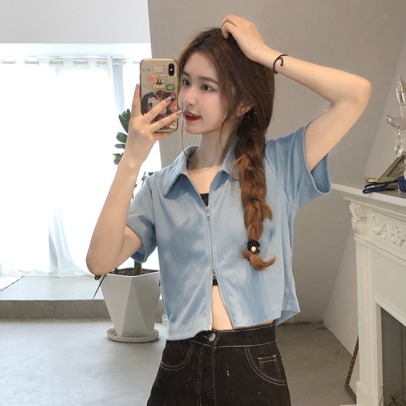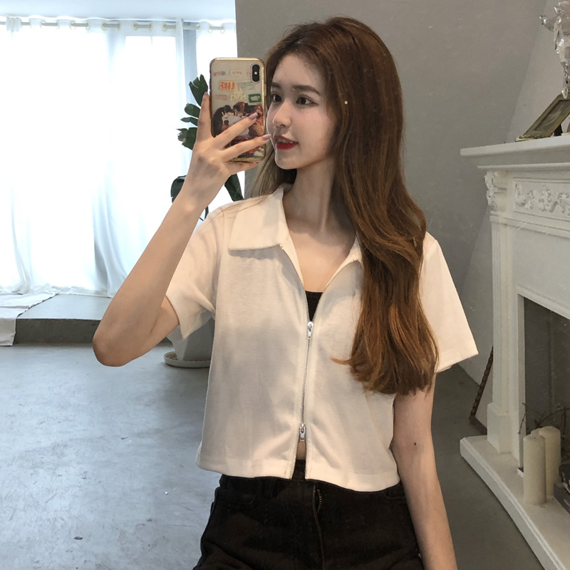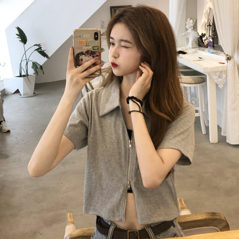 여름 한국판 2026 신상 여성복 슬림핏 반팔 티셔츠 여성용 짧은 지퍼 셔츠 스몰탑 자켓스토어 가기