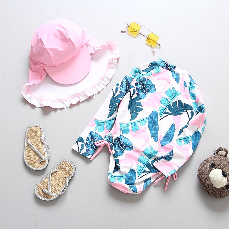 수출 한국 원피스 자외선 차단제 자외선 차단 여아 아기 해변 수영복 여아 공주 긴 소매 자외선 차단제 수영복