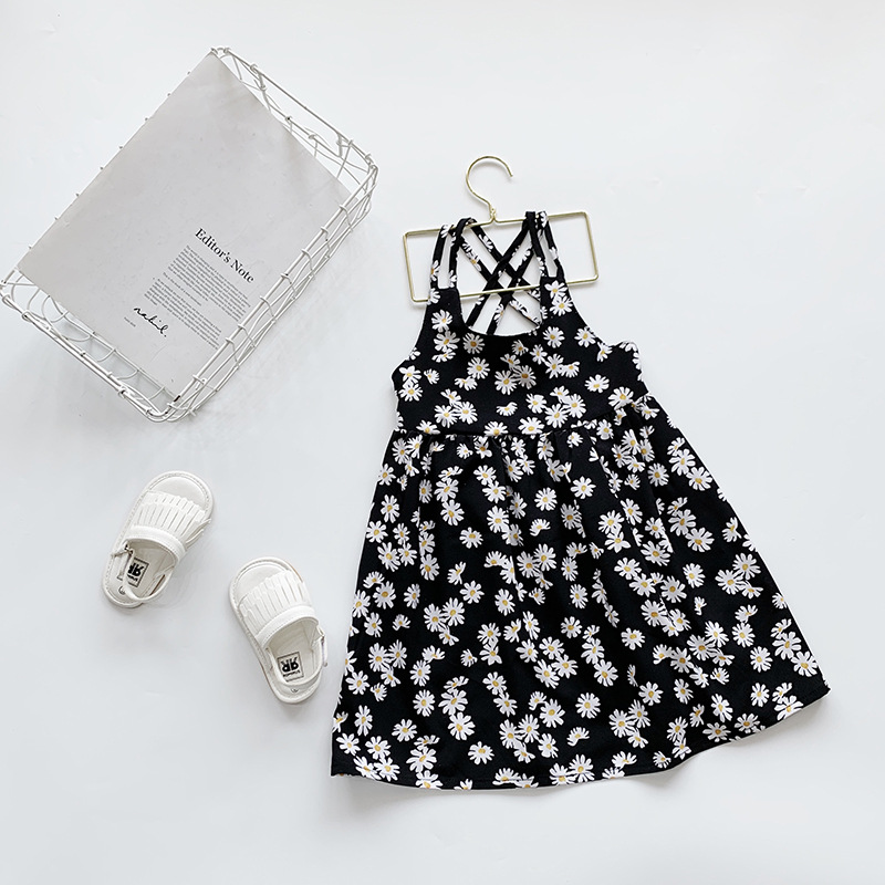 2025 아동 의류 여름 어린이 쉬폰 데이지 소녀 드레스 소스 꽃 서스펜더 공주 드레스 로리타스토어 가기