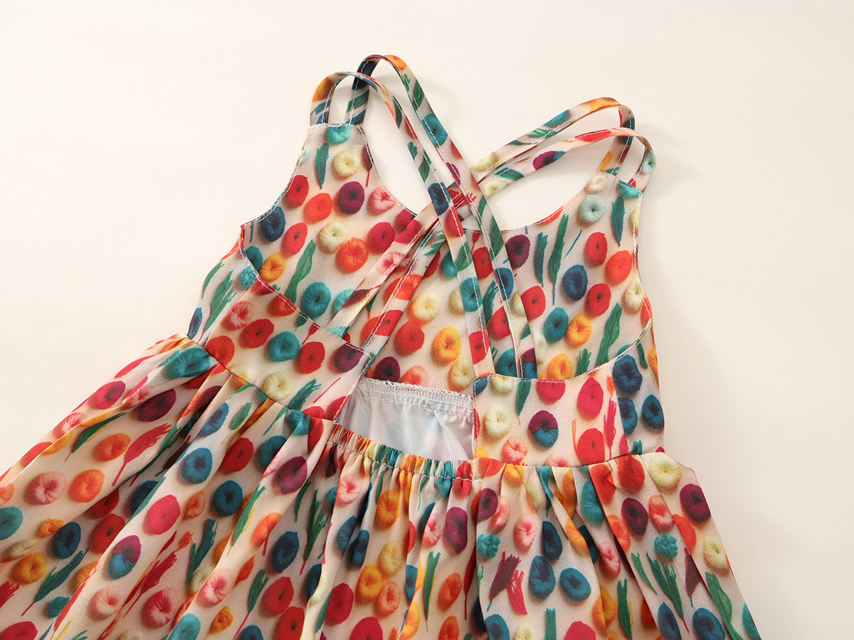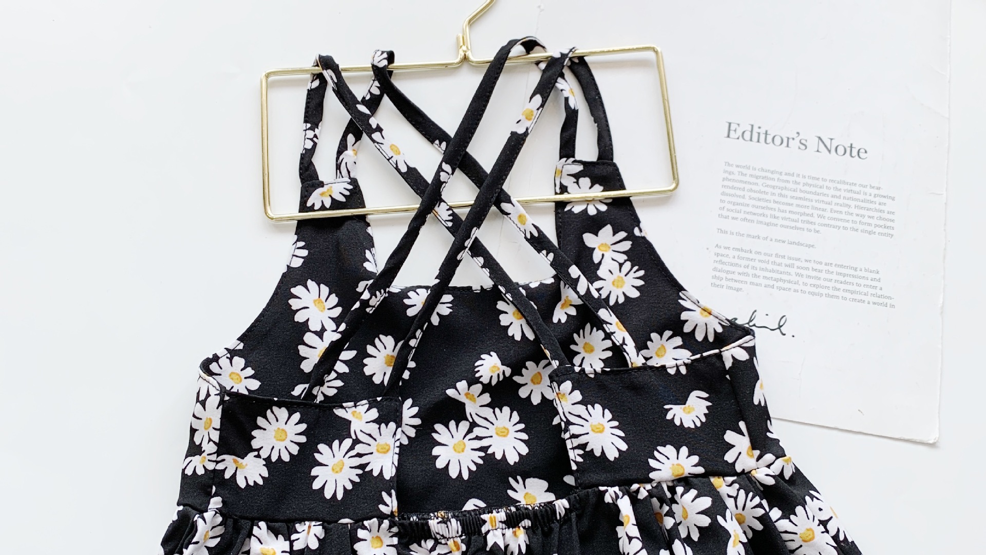2025 아동 의류 여름 어린이 쉬폰 데이지 소녀 드레스 소스 꽃 서스펜더 공주 드레스 로리타