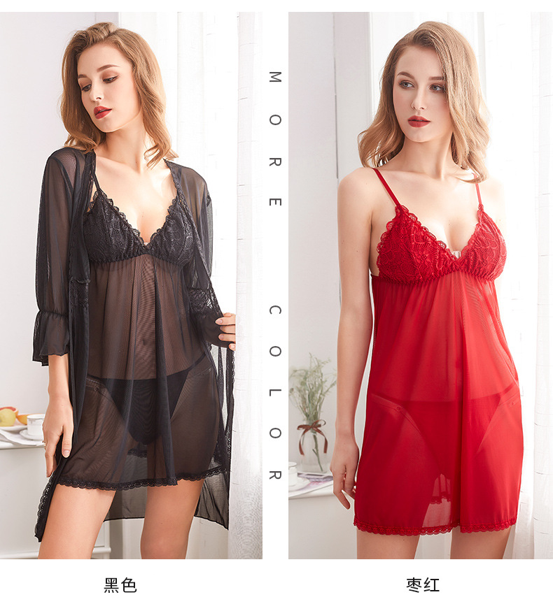 Yusheng 여름 섹시한 잠옷 3 종 세트 여자의 성인 패션 재미 속옷 가슴 패드 안티 침투 메쉬 잠옷