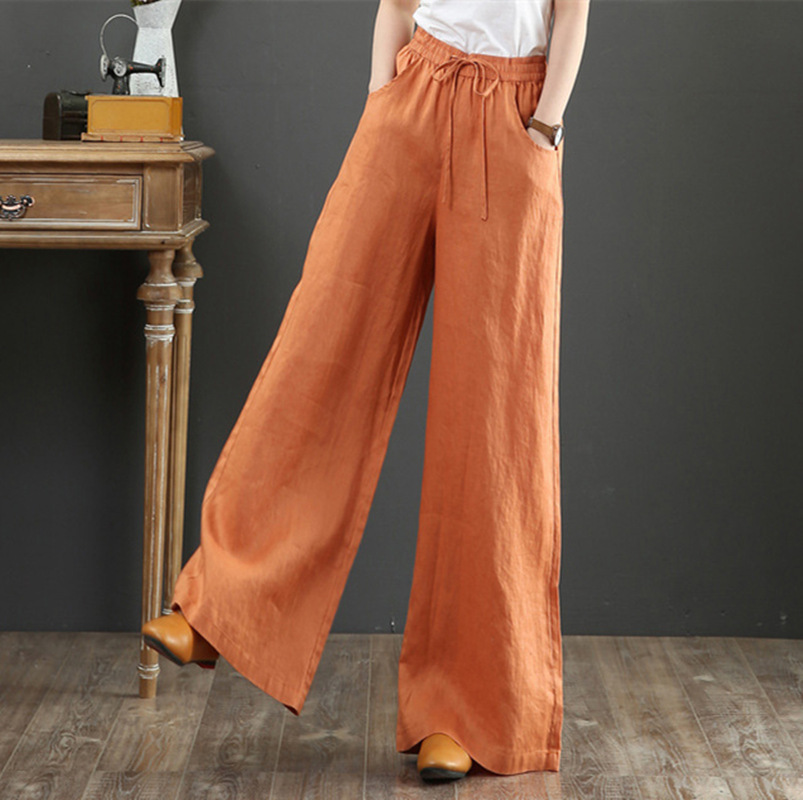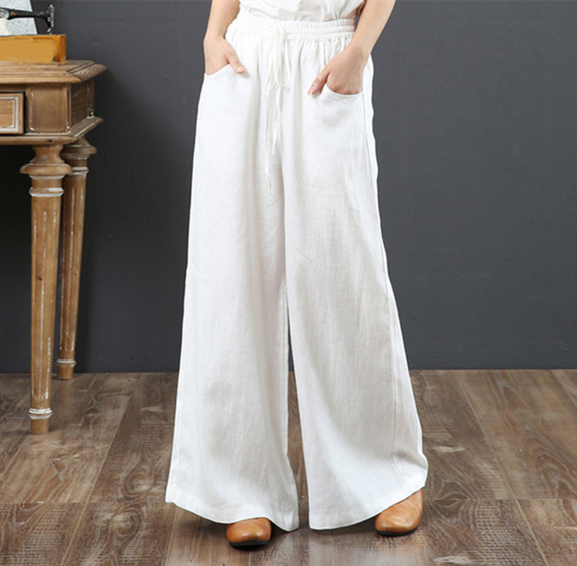 2023 봄과 여름 예술적인 면 린넨 여성용 바지 느슨한 플러스 사이즈 와이드 레그 팬츠 하이 웨이스트 팬츠 스트레이트 팬츠 린넨 팬츠스토어 가기