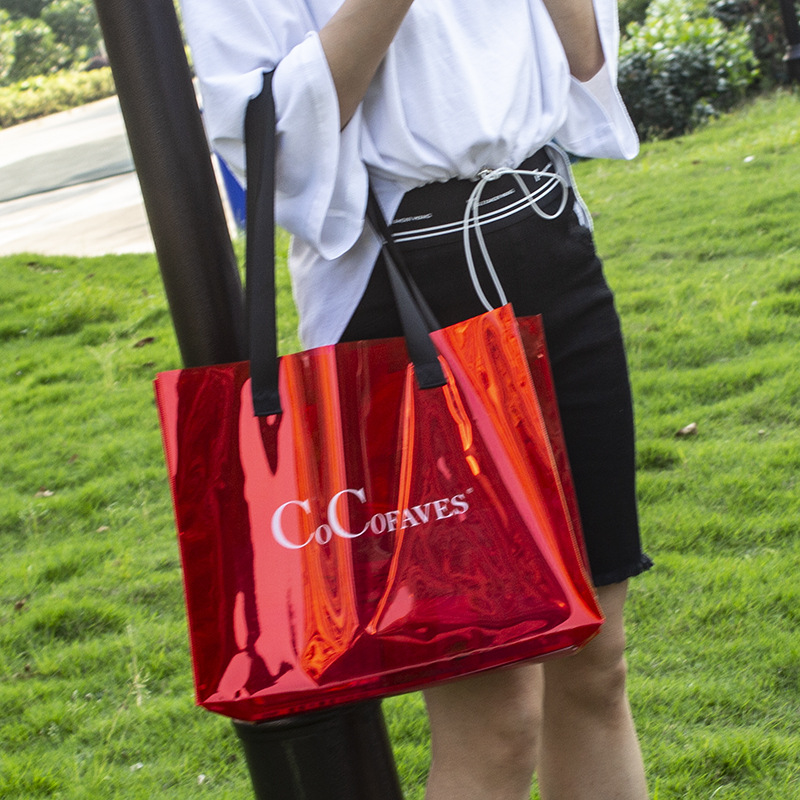 外贸定制红色幻彩PVC手提袋加印广告LOGO品质保障