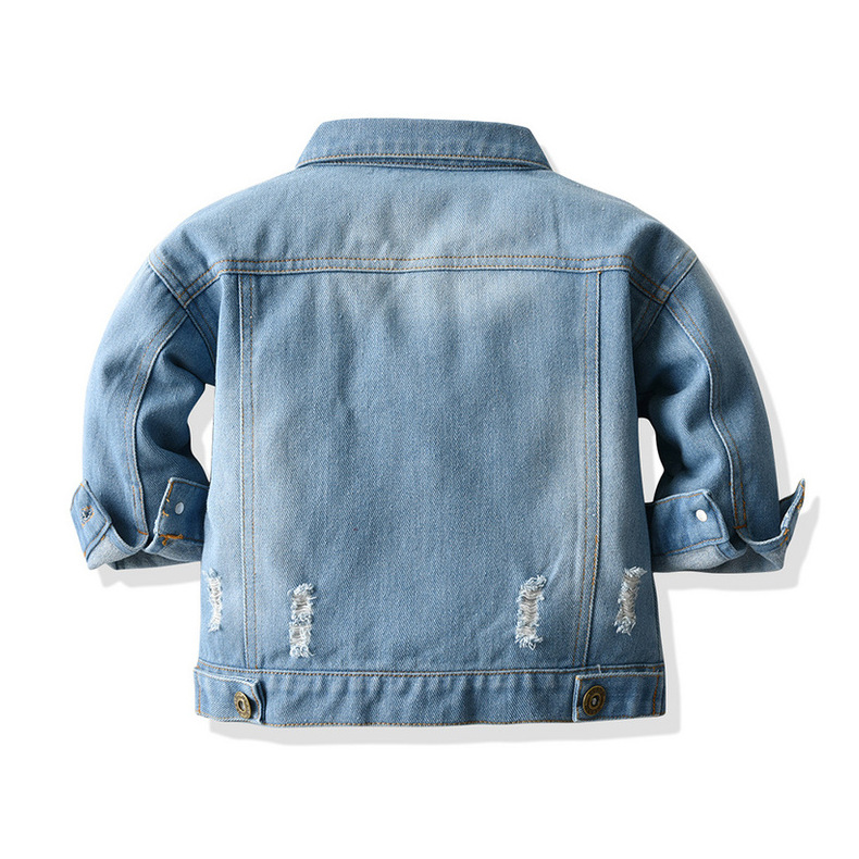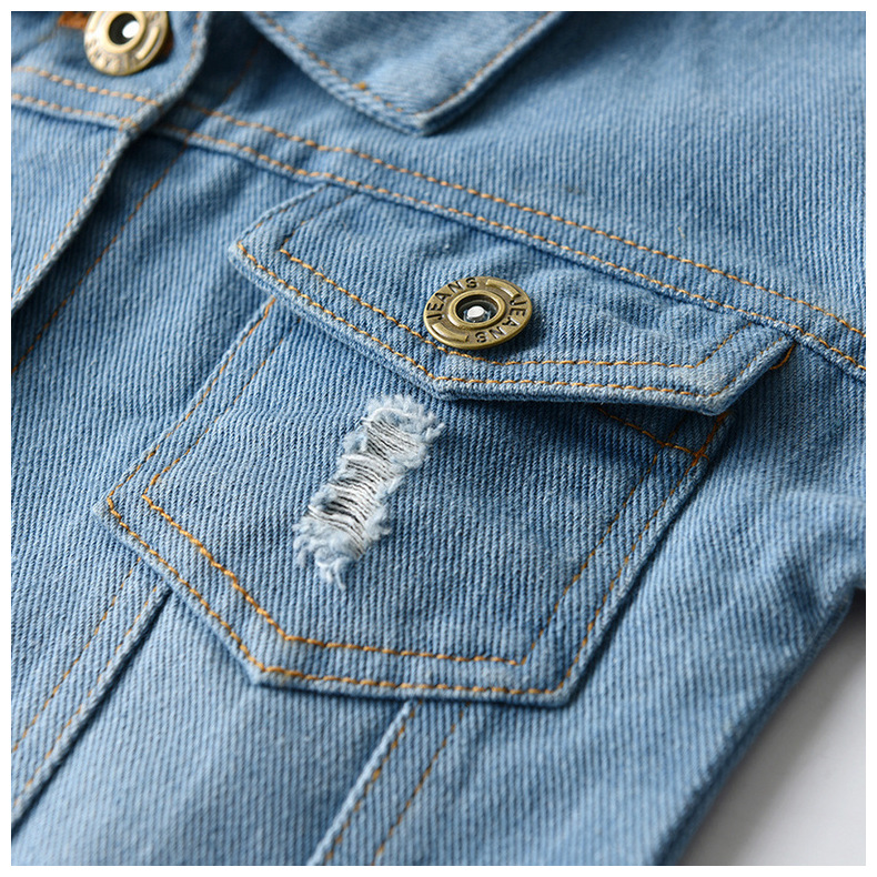 2025 봄, 가을 한국 스타일 중립 아동 코트 디스트레스드 카디건 데님 짧은 긴팔 옷깃 아동복 베이비 도매스토어 가기