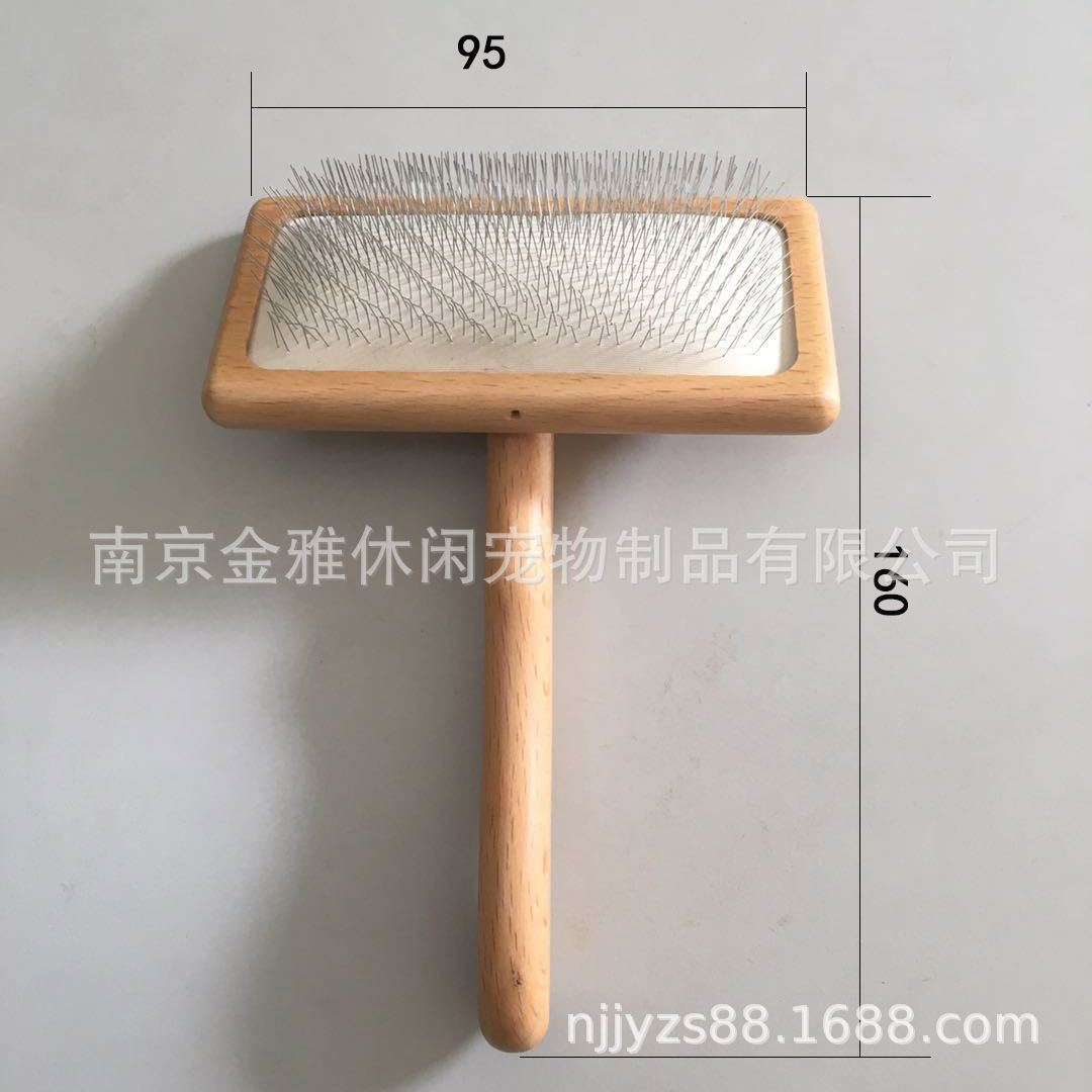 에어백 핀 빗 나무 손잡이 스테인레스 스틸 핀 빗 나무 개 고양이 빗 나무 개 고양이 애완 동물 브러시스토어 가기
