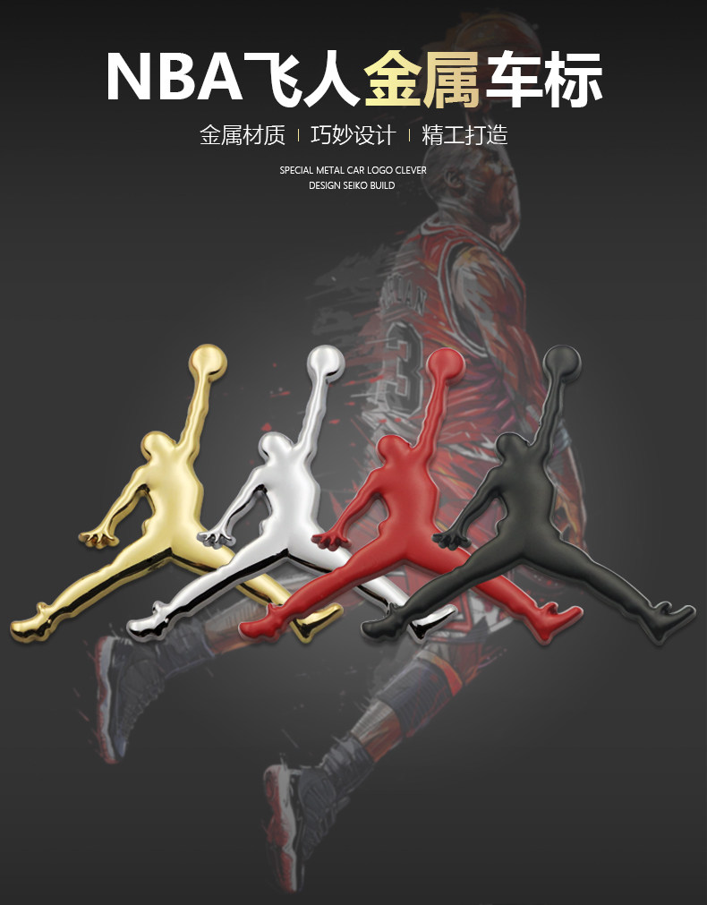 메탈 NBA 요르단 AJ 농구 요르단 자동차 로고 맞춤형 장식 스티커 3D 자동차 스티커 자동차 꼬리 스티커스토어 가기