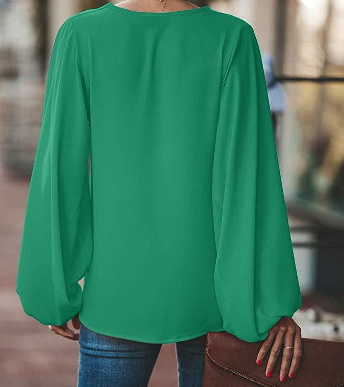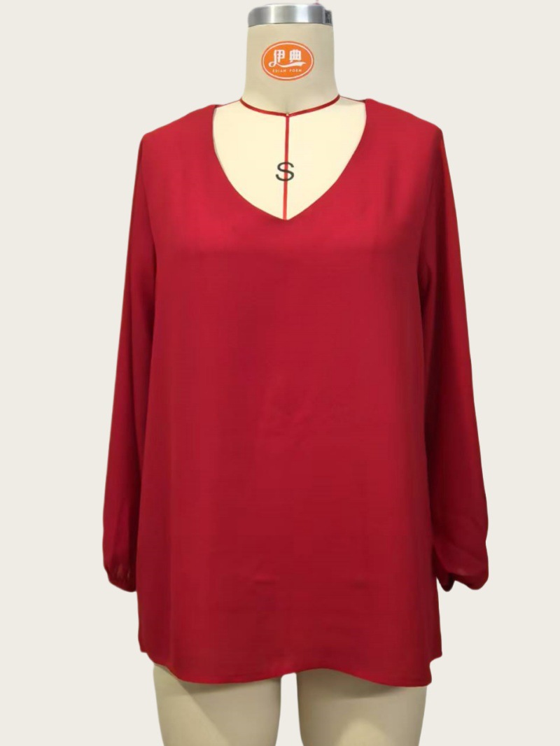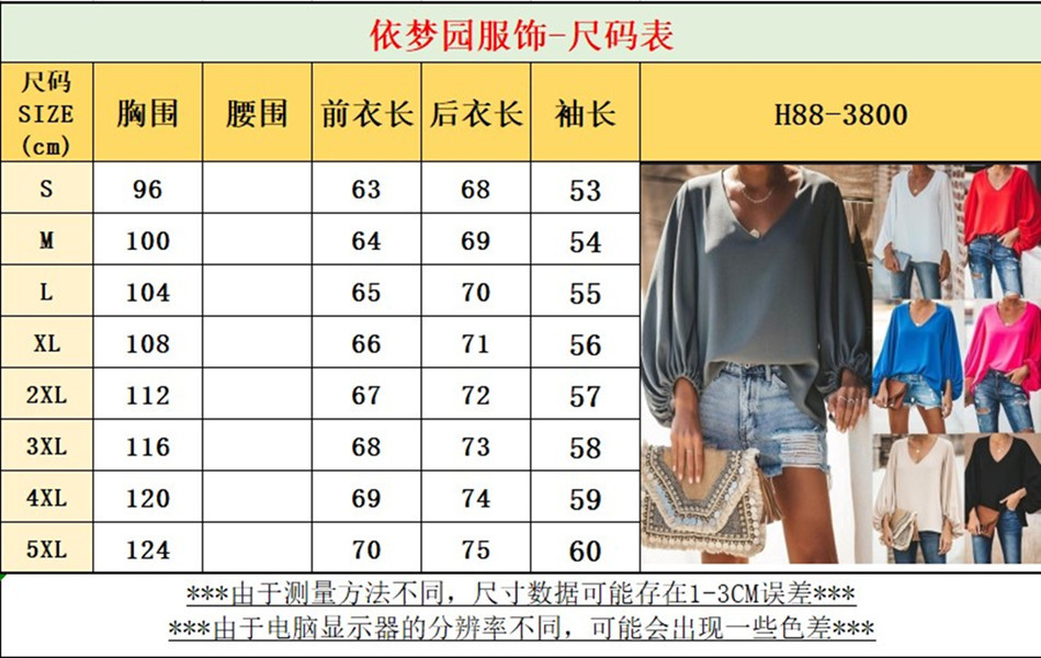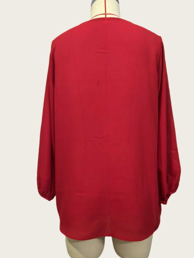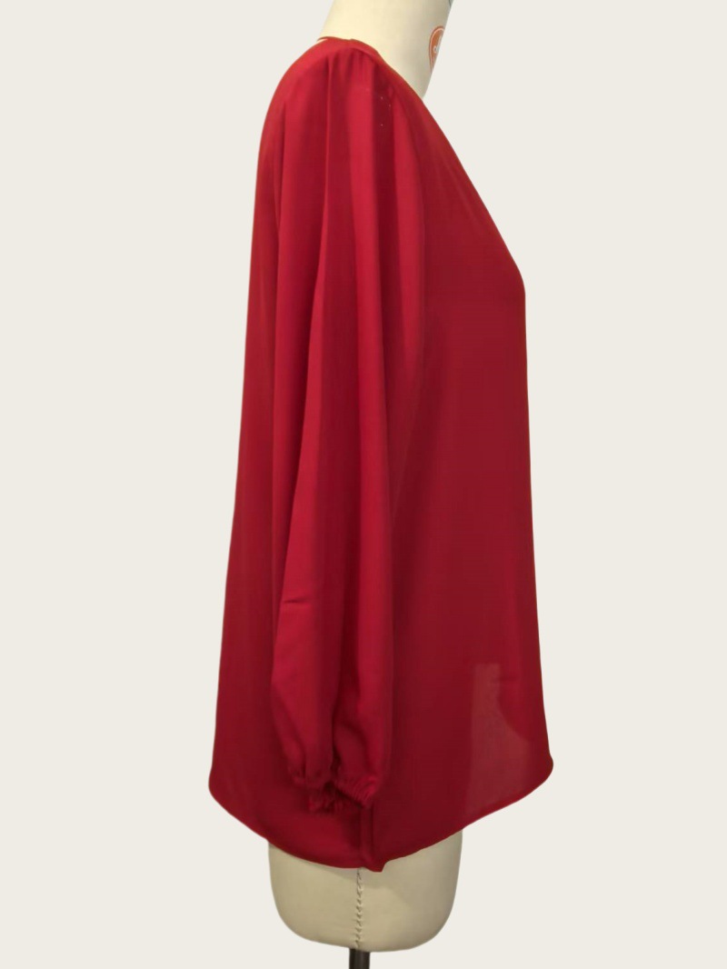유럽 및 미국 여성복 WISH 2025 여름 신상품 브이넥 랜턴 슬리브 루즈핏 긴팔 빅사이즈 여성 상의