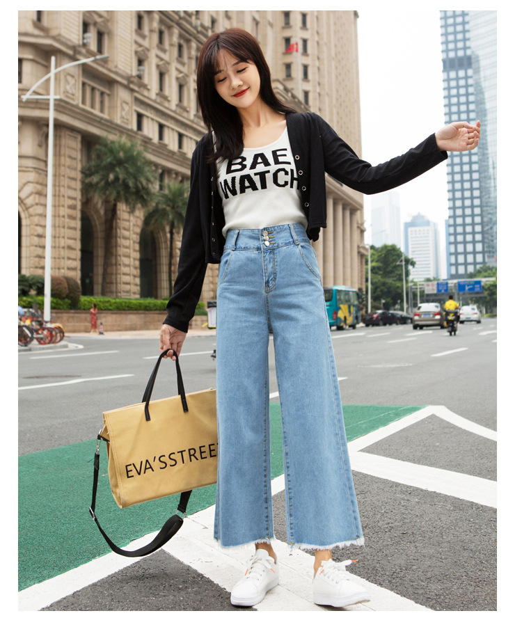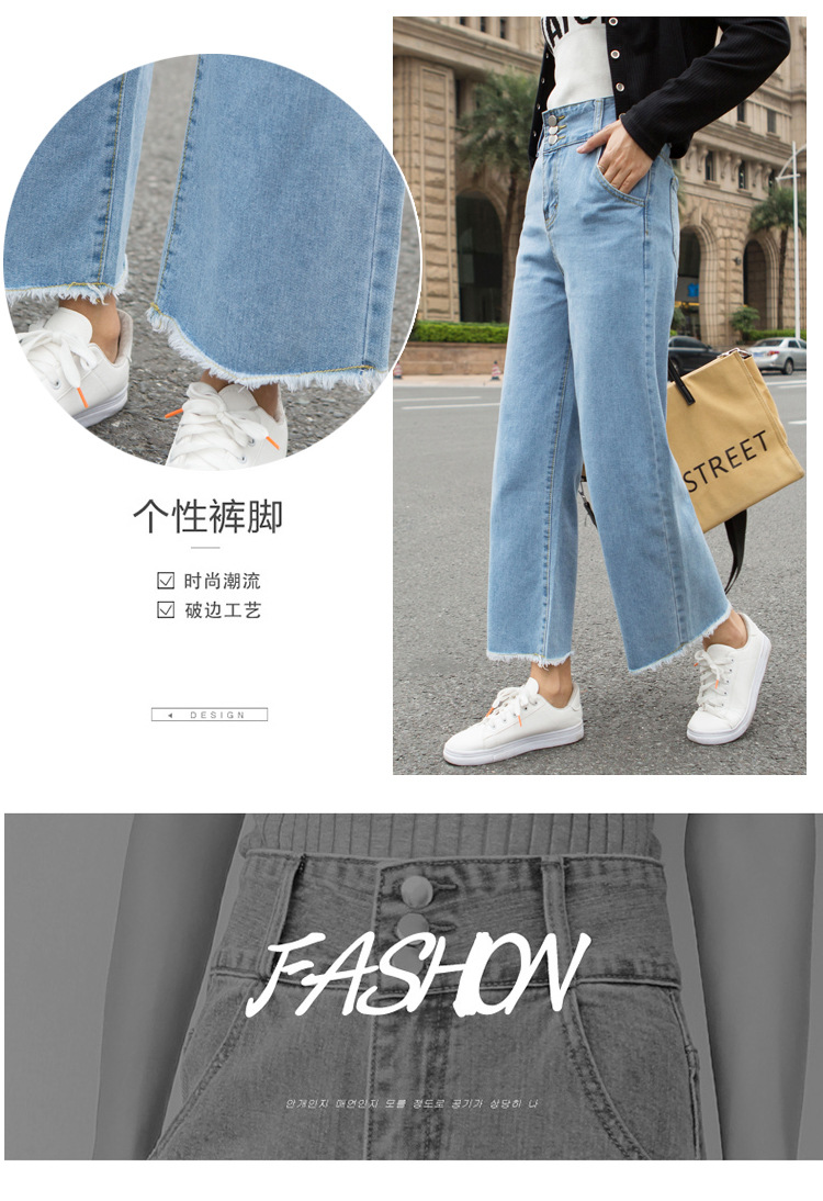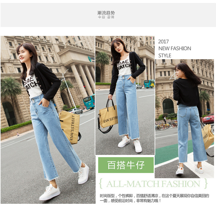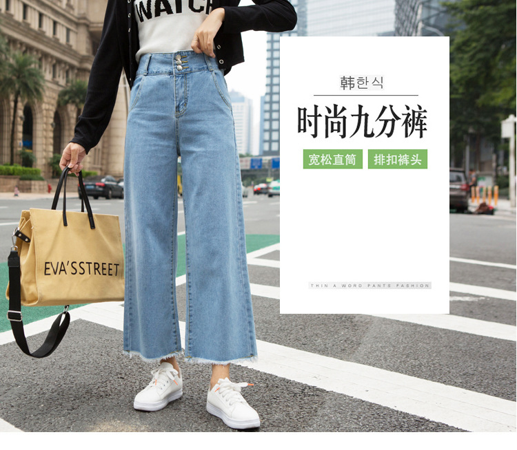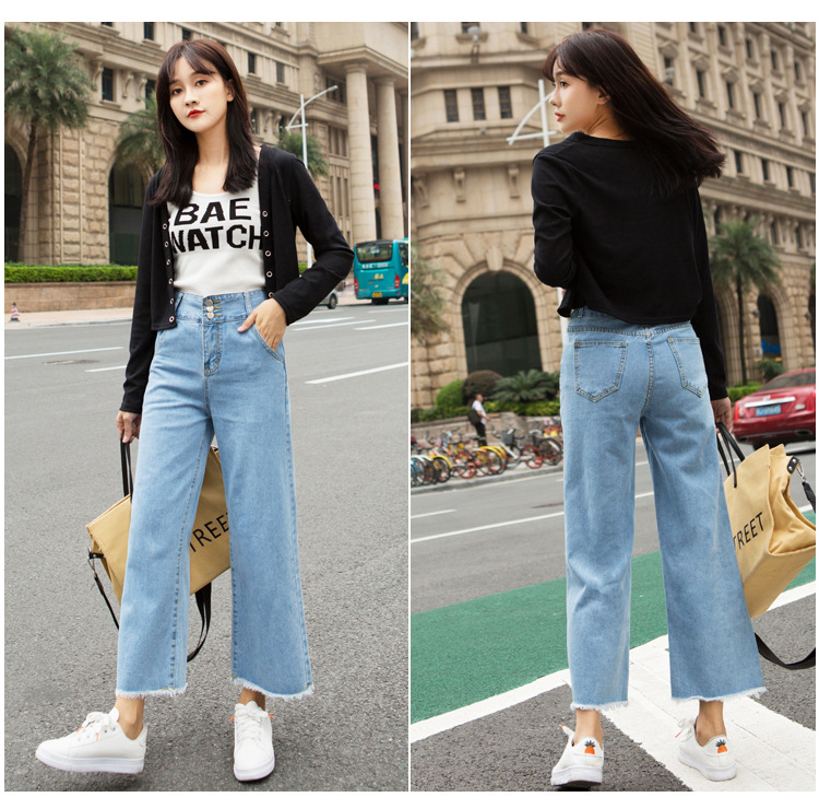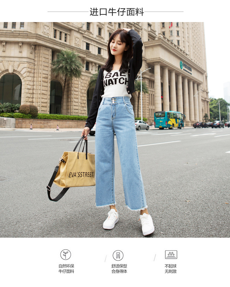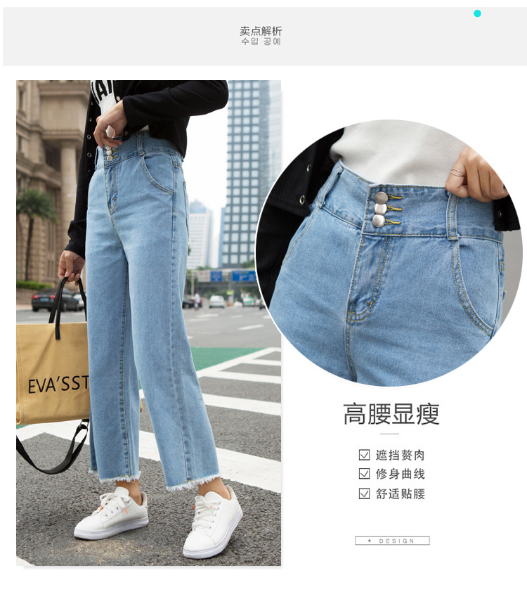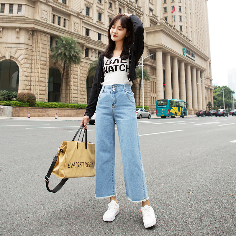 대외 무역 크로스 보더 한국 스타일 하이 웨이스트 와이드 레그 청바지 여성용 봄 여름 가을 발목 길이 바지 스트레이트 레그 팬츠 느슨한 슬리밍 여성 패션스토어 가기