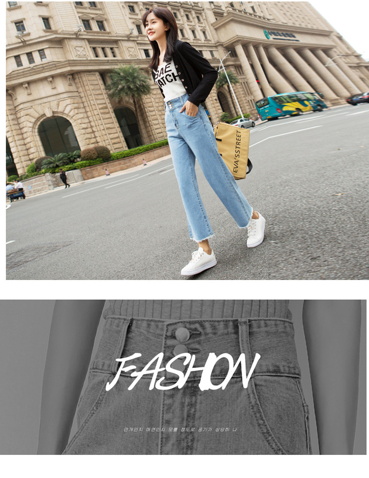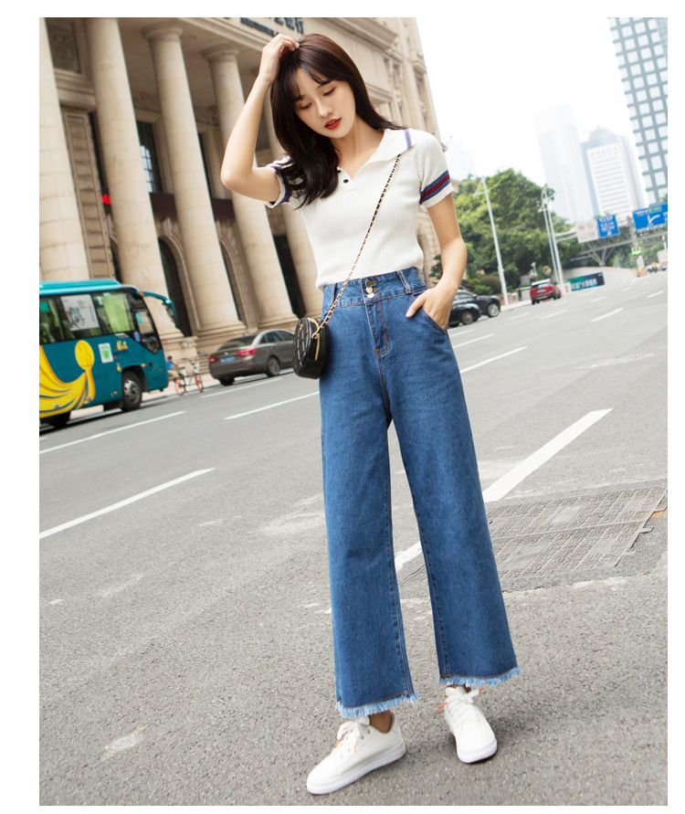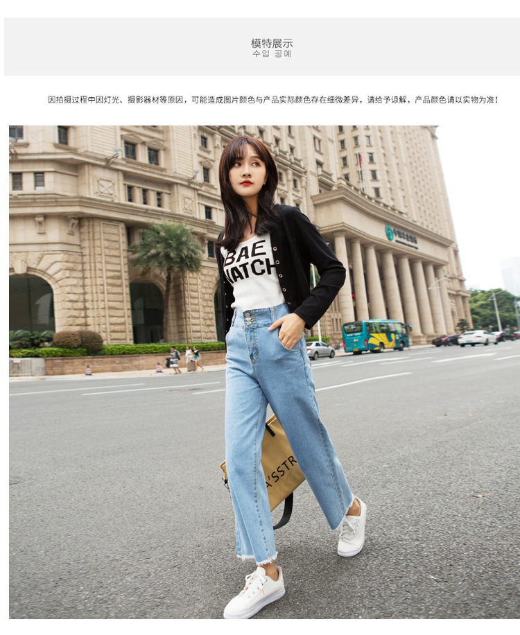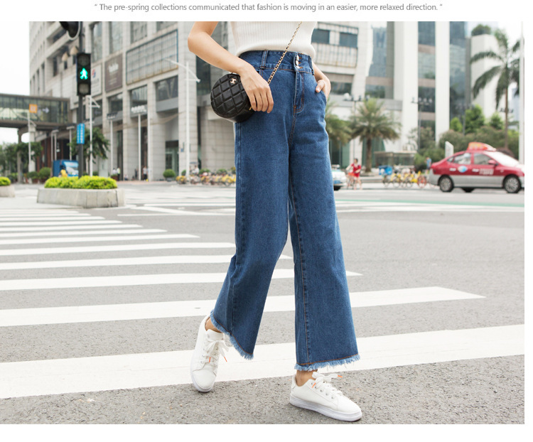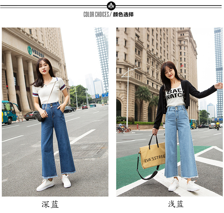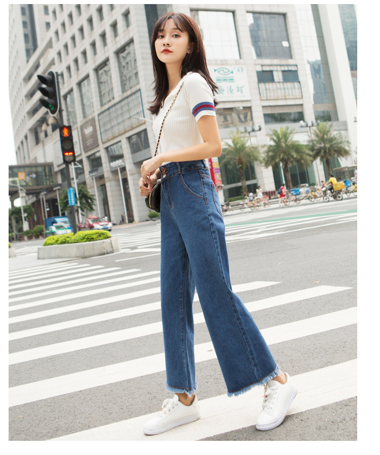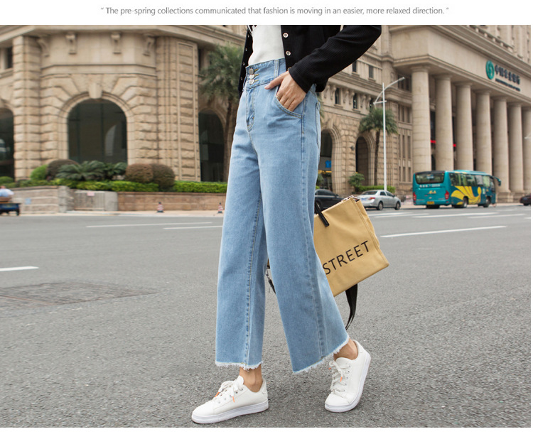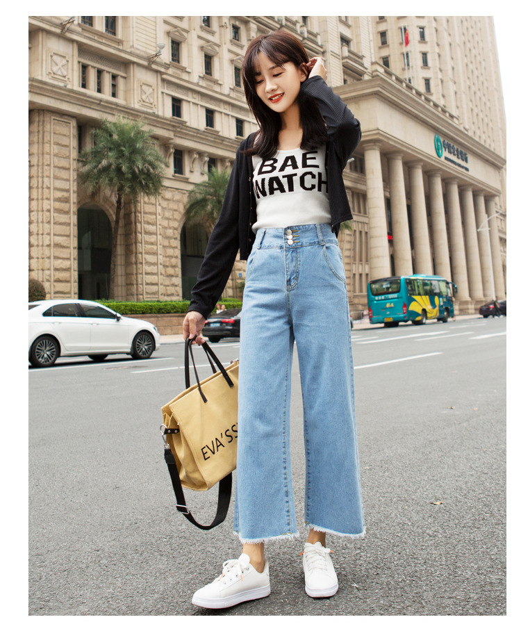대외 무역 크로스 보더 한국 스타일 하이 웨이스트 와이드 레그 청바지 여성용 봄 여름 가을 발목 길이 바지 스트레이트 레그 팬츠 느슨한 슬리밍 여성 패션스토어 가기