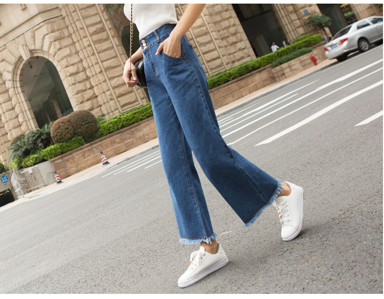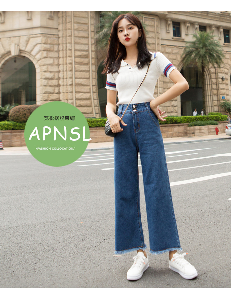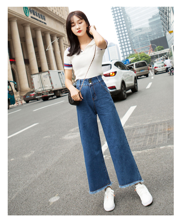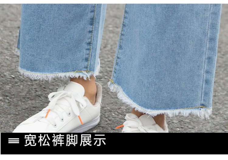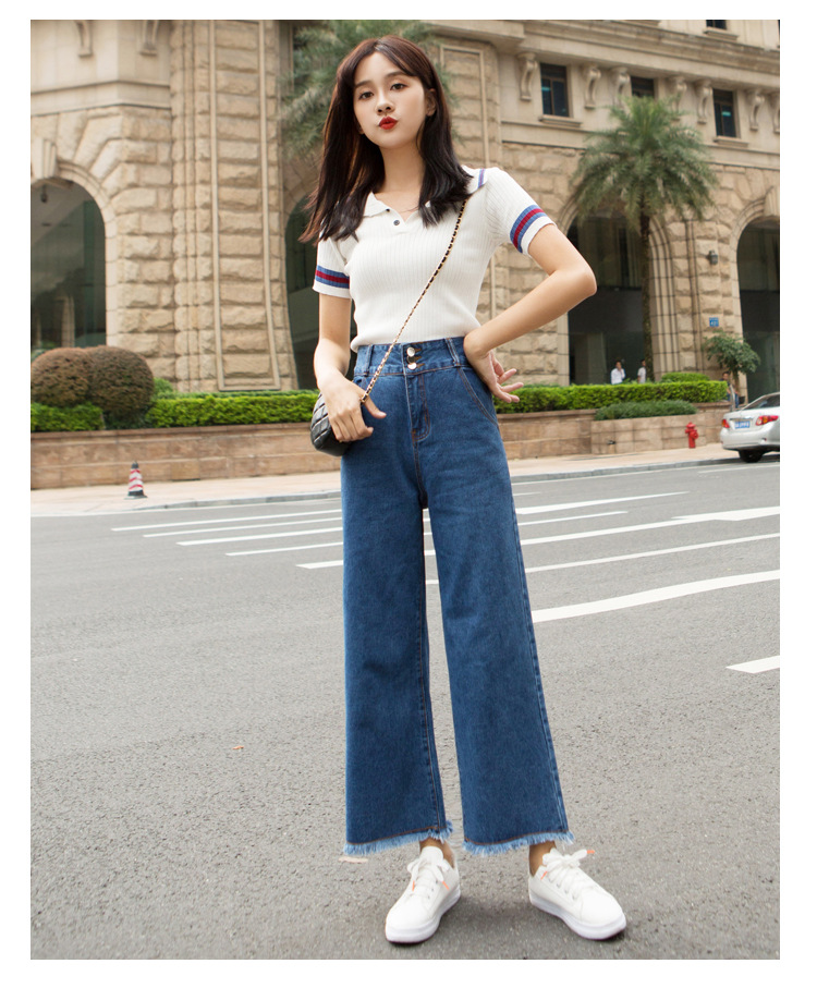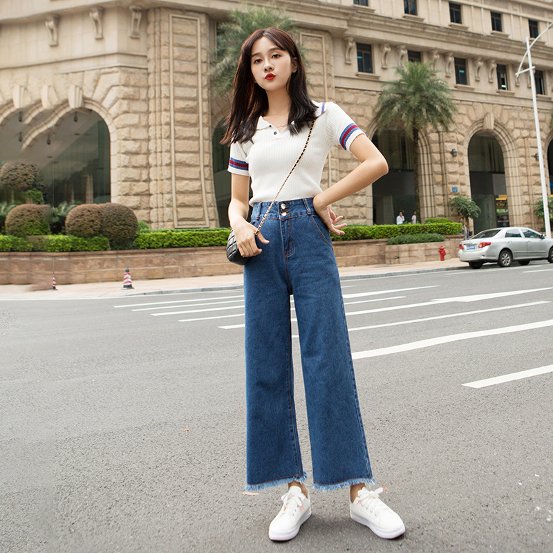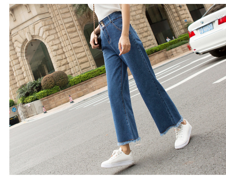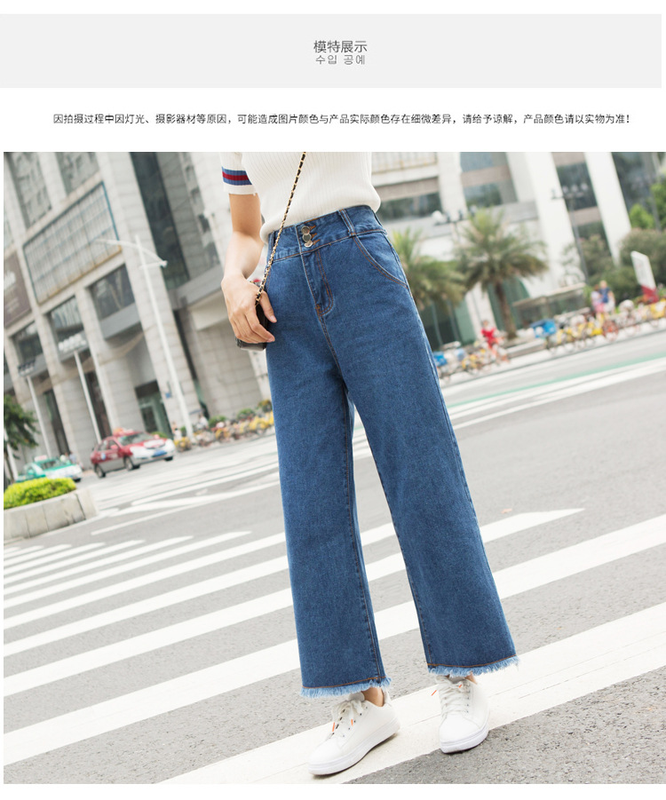 대외 무역 크로스 보더 한국 스타일 하이 웨이스트 와이드 레그 청바지 여성용 봄 여름 가을 발목 길이 바지 스트레이트 레그 팬츠 느슨한 슬리밍 여성 패션스토어 가기