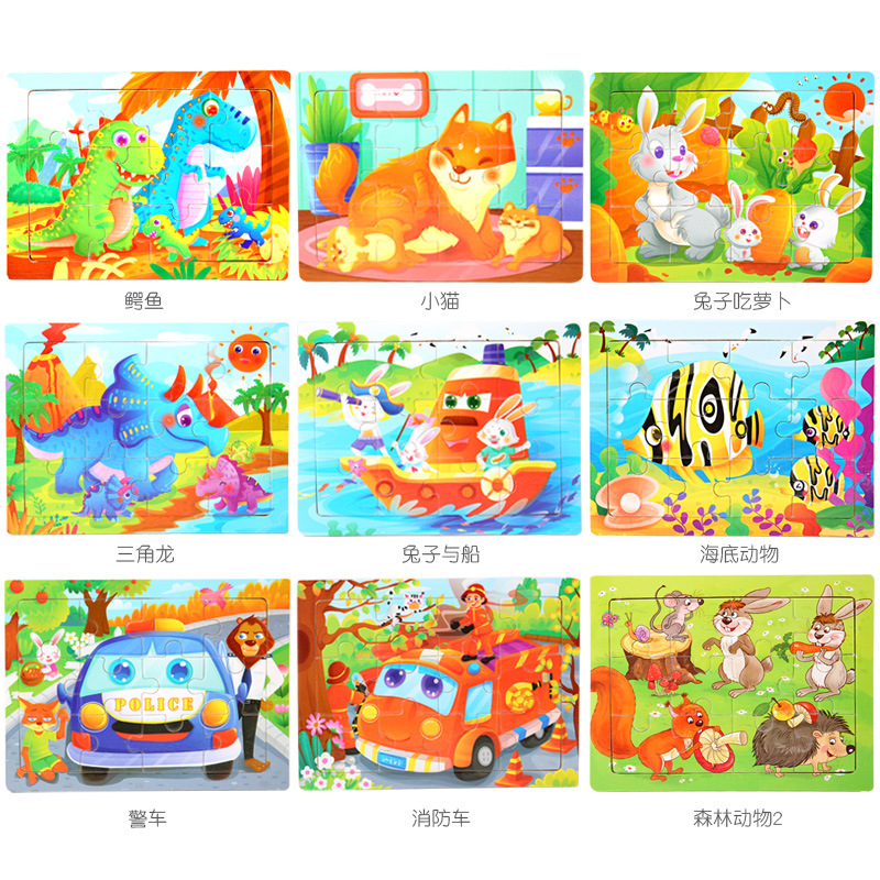 공장 직공급 목조 어린이 12 만화 동물 교통 직소 퍼즐 아기 조기 교육 장난감 노점 판매스토어 가기