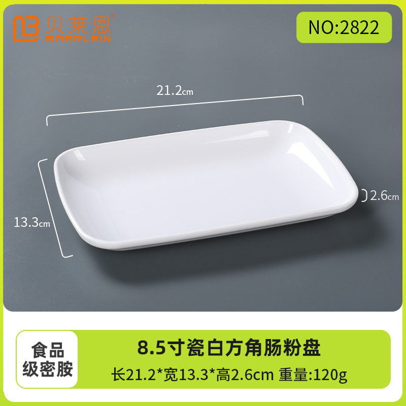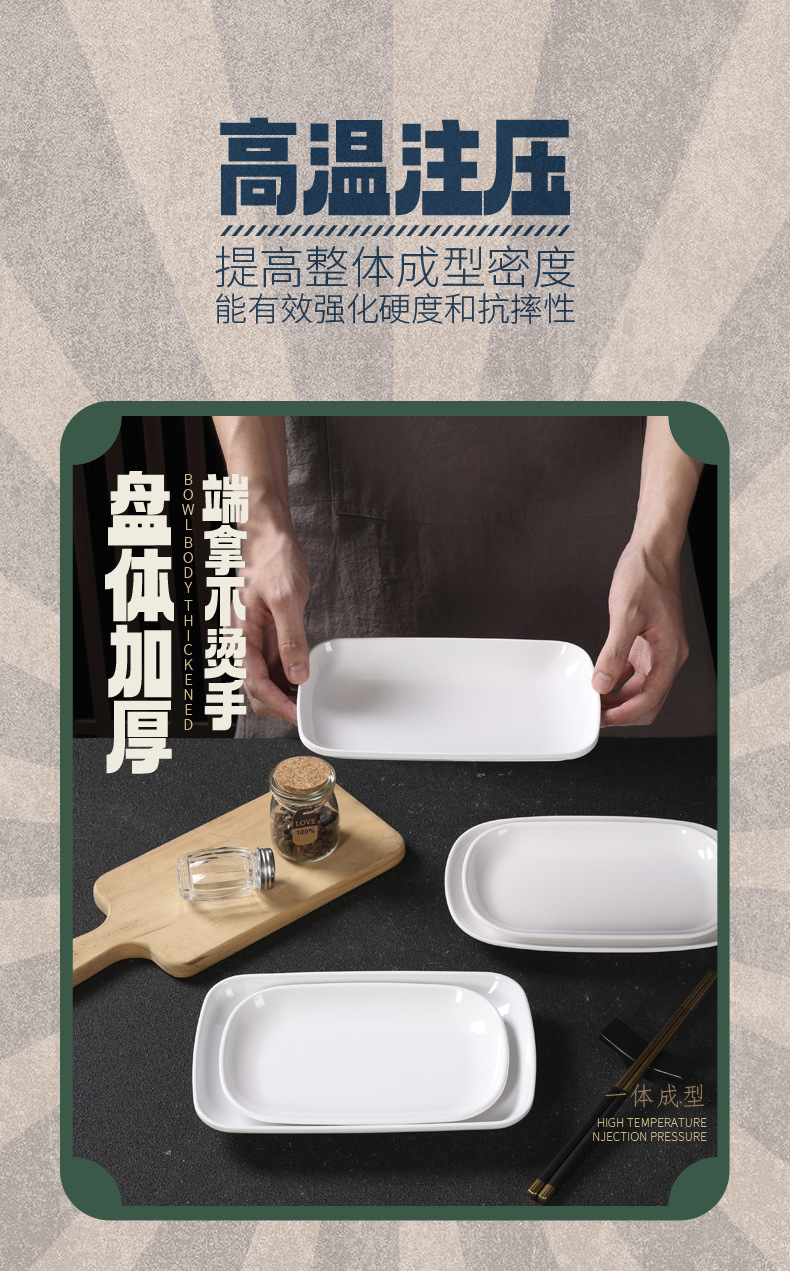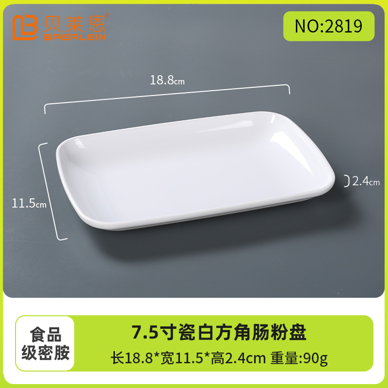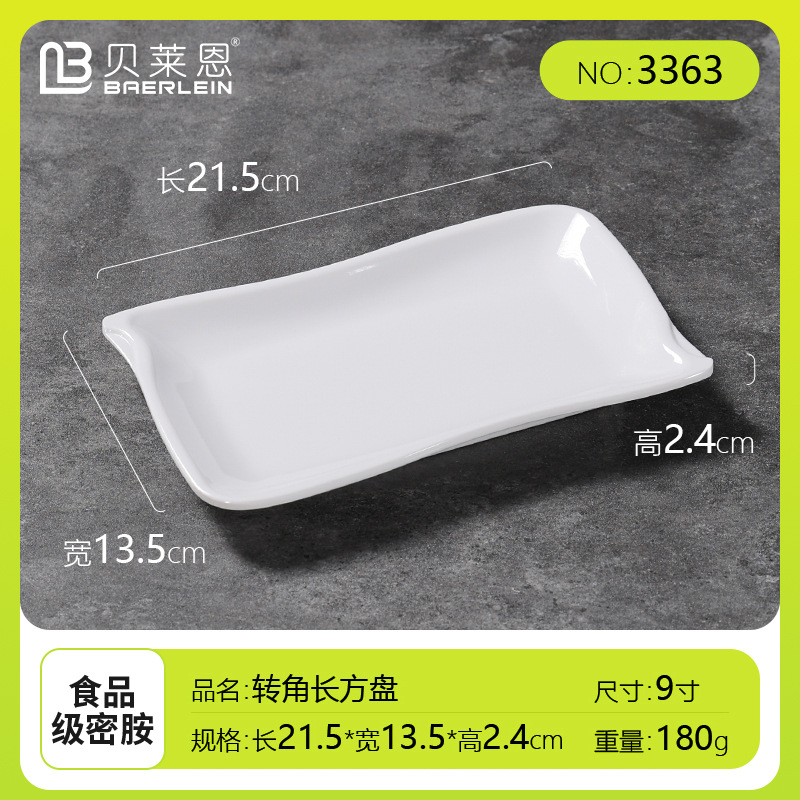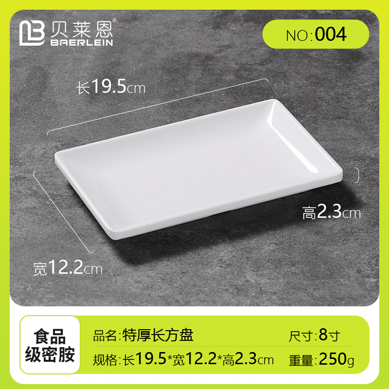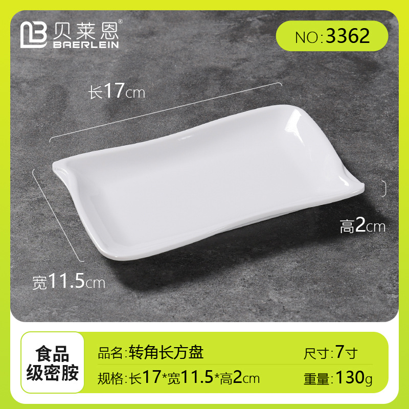 흰색 모조 도자기 쌀 롤 플레이트 멜라민 식기 냄비 레스토랑 직사각형 접시 낙하 방지 플라스틱 스낵 플레이트스토어 가기