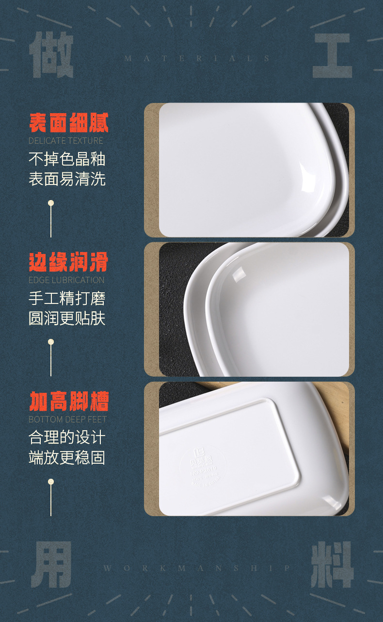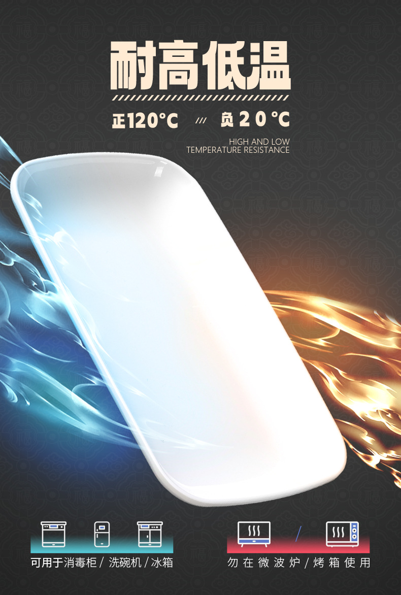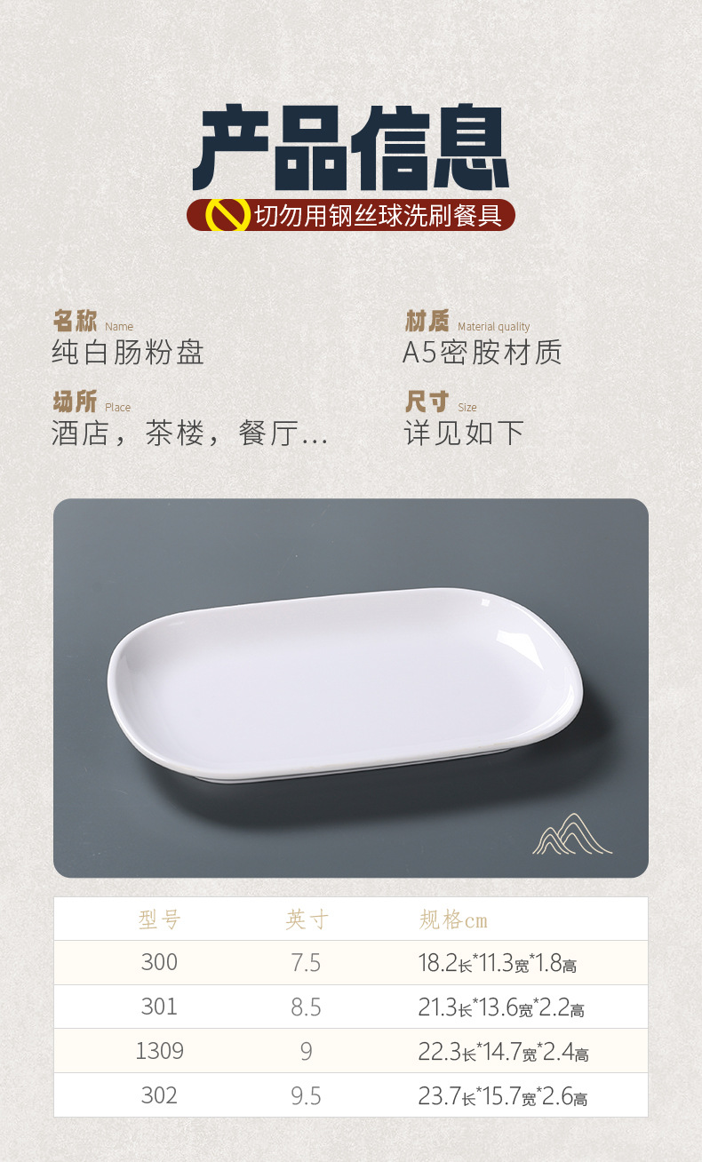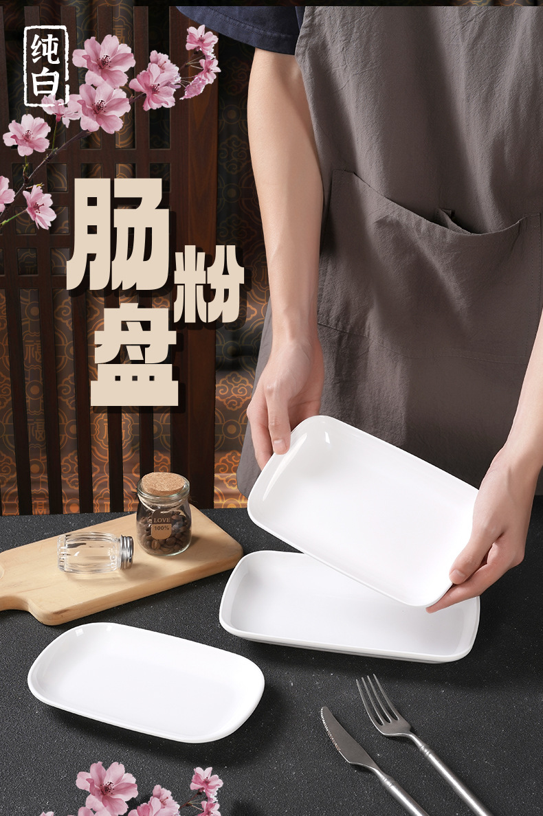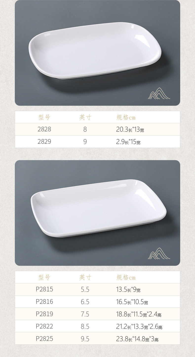 흰색 모조 도자기 쌀 롤 플레이트 멜라민 식기 냄비 레스토랑 직사각형 접시 낙하 방지 플라스틱 스낵 플레이트스토어 가기