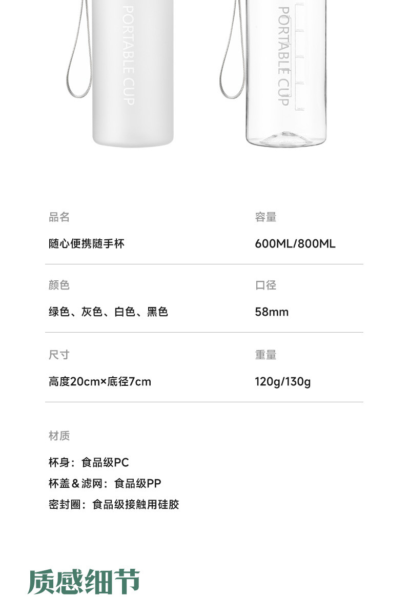 • 800ml 투명 흰색 뚜껑 + 차 분리기