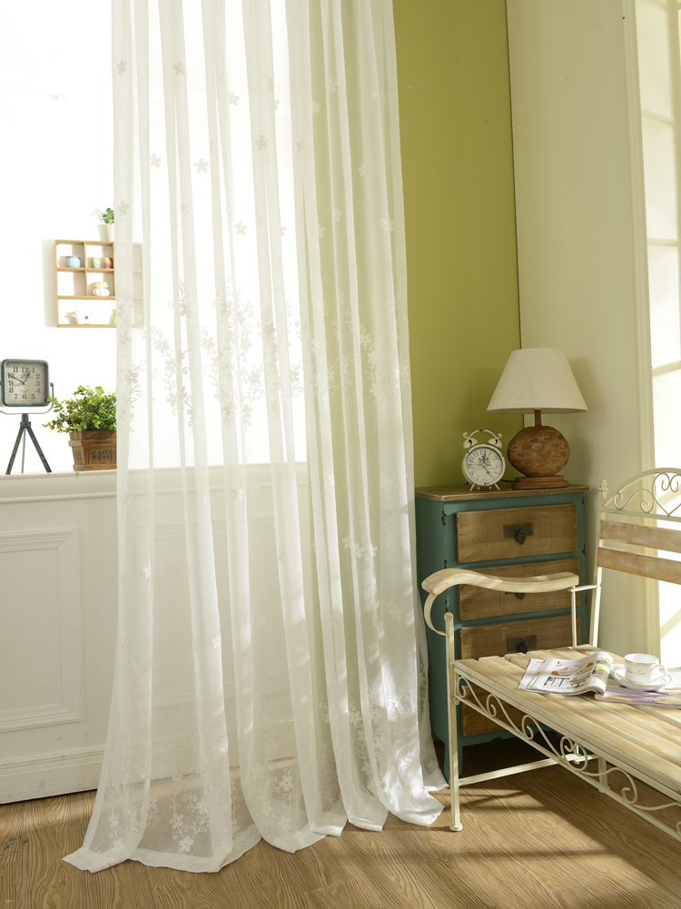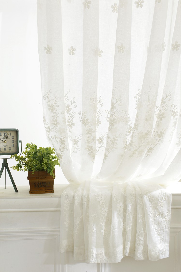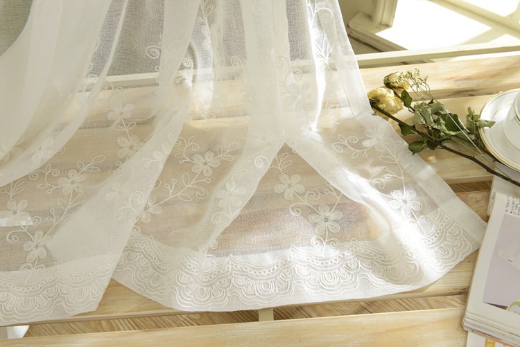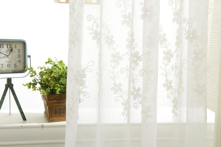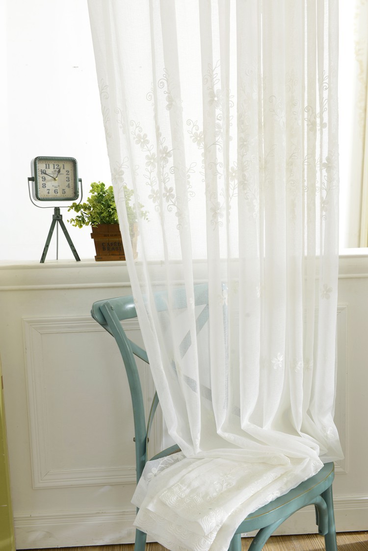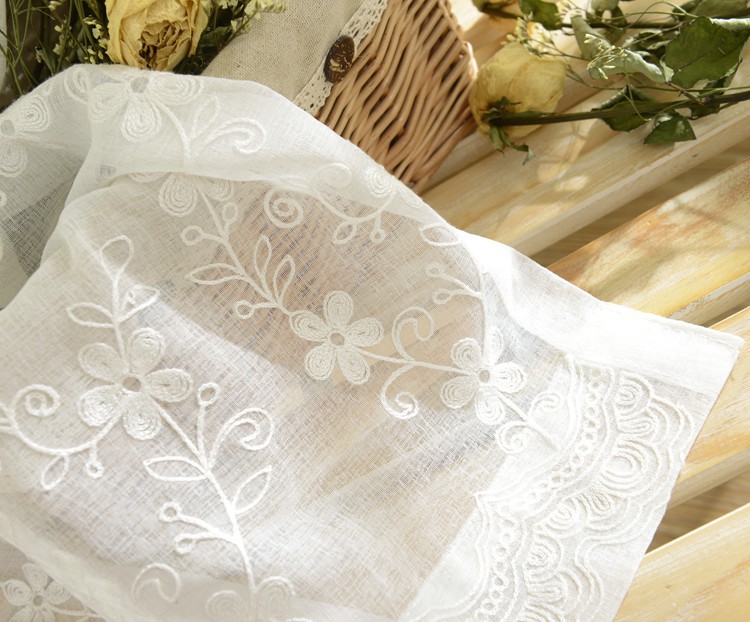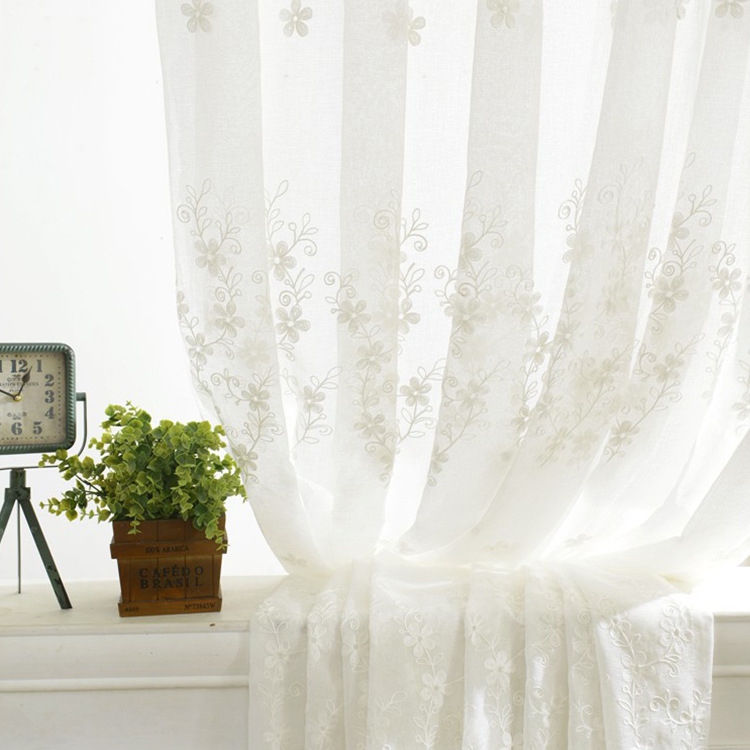미국 목가적 인 자수 창 스크린 단색 면 및 린넨 거즈 커튼 자수 커튼 거실 침실 발코니 공장 도매 크로스 보더스토어 가기