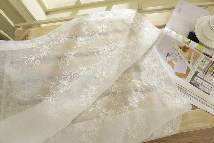 미국 목가적 인 자수 창 스크린 단색 면 및 린넨 거즈 커튼 자수 커튼 거실 침실 발코니 공장 도매 크로스 보더