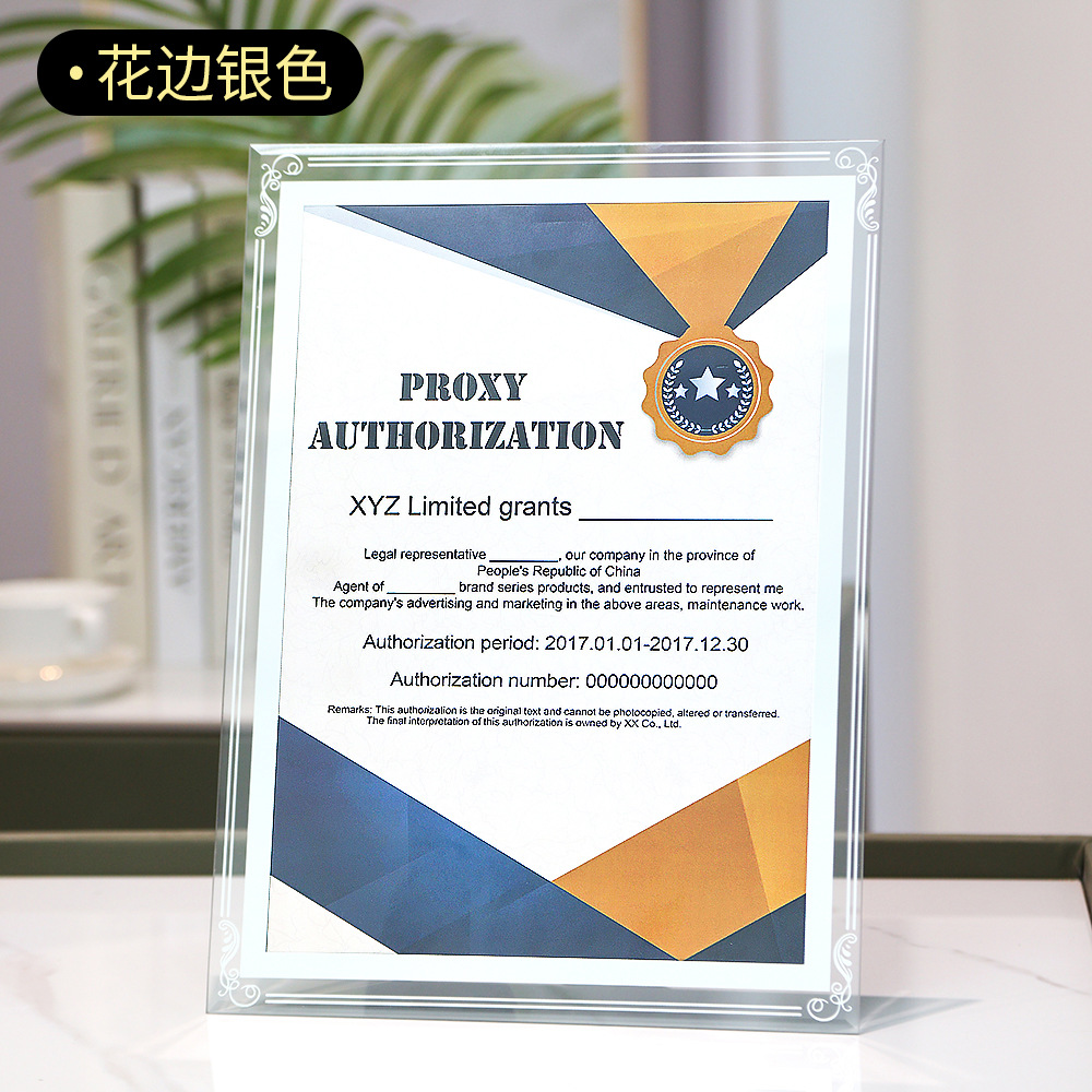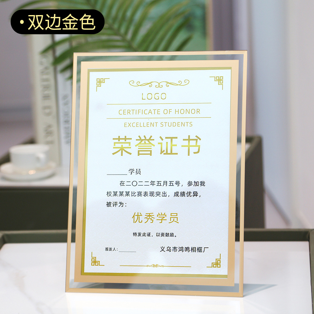크리스탈 유리 포토 프레임 도매 5 인치 6 인치 7 인치 8 인치 A4 웨딩 사진 스튜디오 라이센스 프레임 명예 증명서
