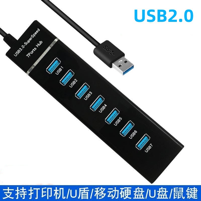1、7个USB高速传输接口,高性能主控芯片保障每个USB接口以5Gbps、480MBS的理论高速带宽均衡运行,便于多个设备同时使用。