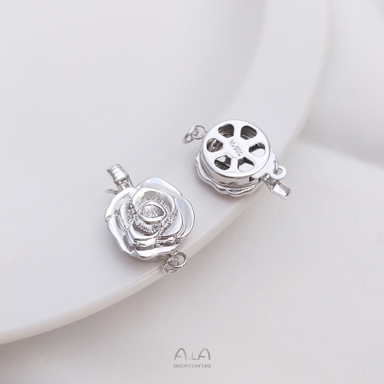 색상 유지 18K 골드 화이트 로즈 플라워 인서트 버클 펄 쥬얼리 마무리 버클 diy 팔찌 목걸이 액세서리스토어 가기