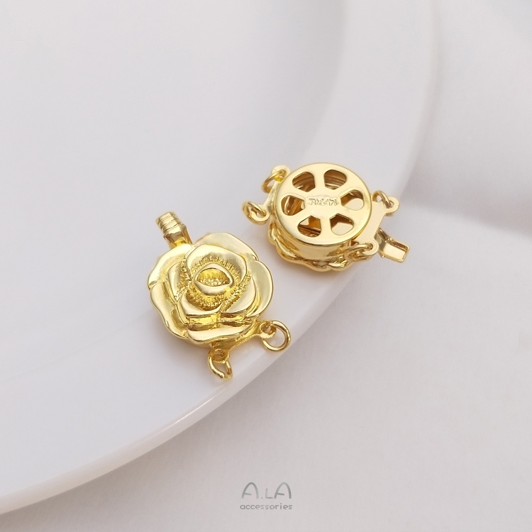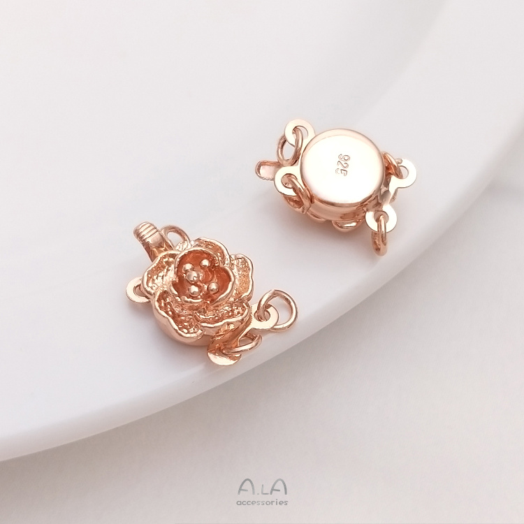 색상 유지 18K 골드 화이트 로즈 플라워 인서트 버클 펄 쥬얼리 마무리 버클 diy 팔찌 목걸이 액세서리
