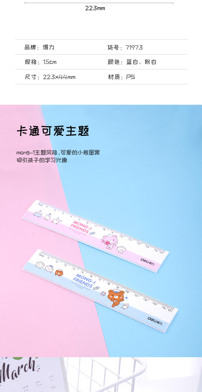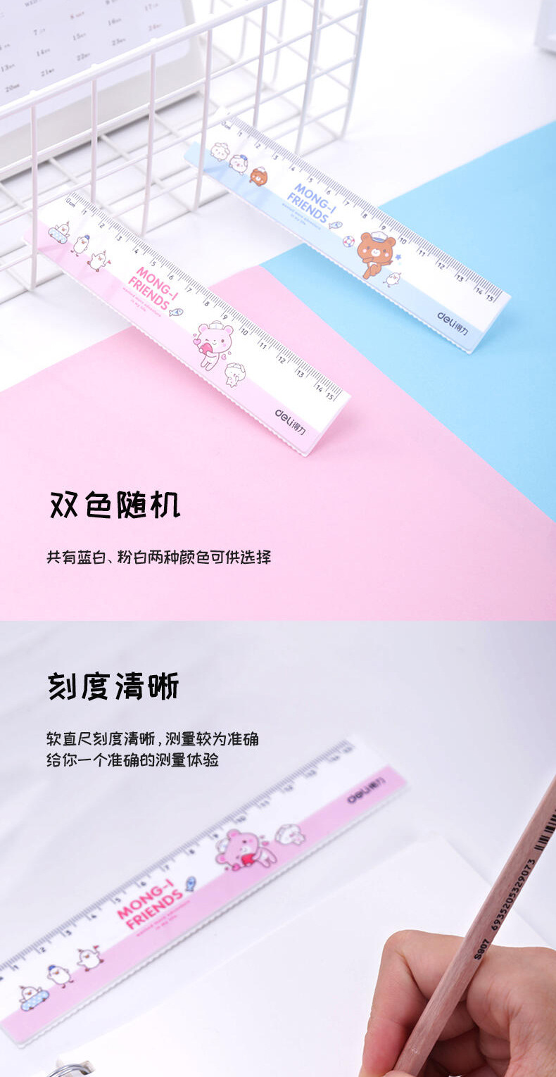 델리 눈금자 71973 학생 만화 간단한 신선한 눈금자 젤리 컬러 스타일 다기능 측정 테스트스토어 가기