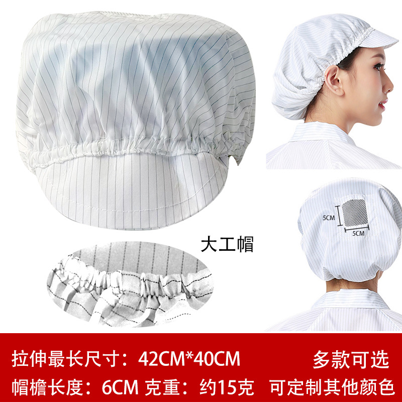 厂家批发防静电大小工帽披肩网格防尘浴帽车间工作防护静电帽
