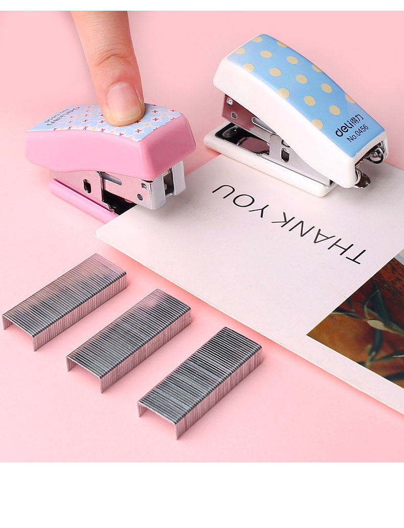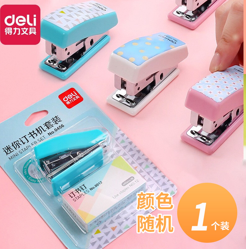 델리 0456 스테이플러 세트 귀여운 만화 스테이플러 미니 작은 스테이플러 학생 문구 선물스토어 가기