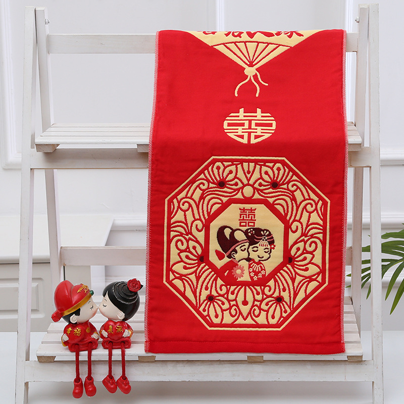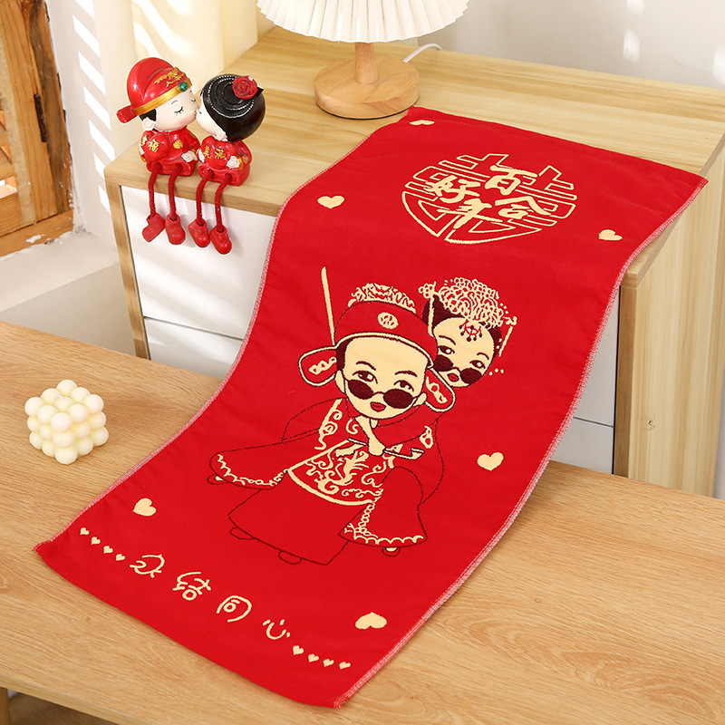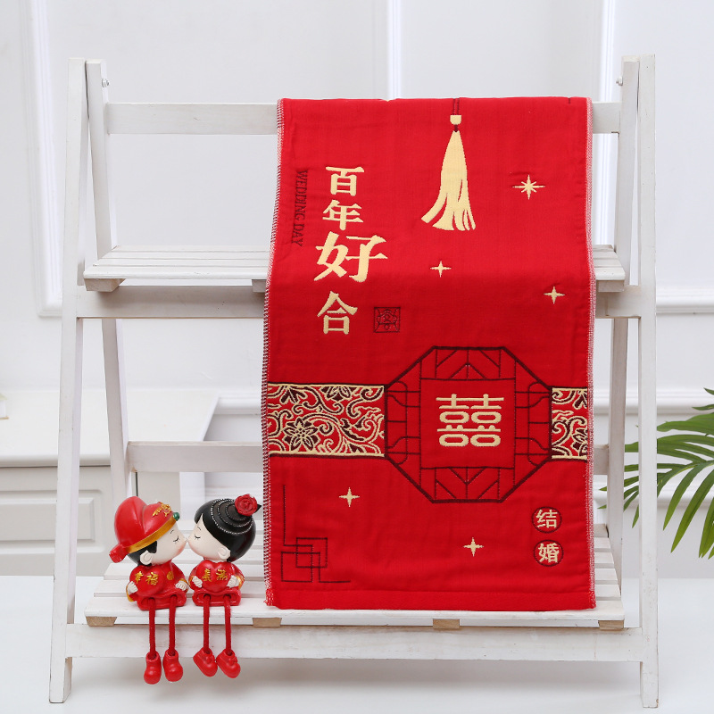 면 4겹 거즈 빨간색 만화풍 창의적인 커플 타월 기념품 웨딩 용품 선물 상자스토어 가기