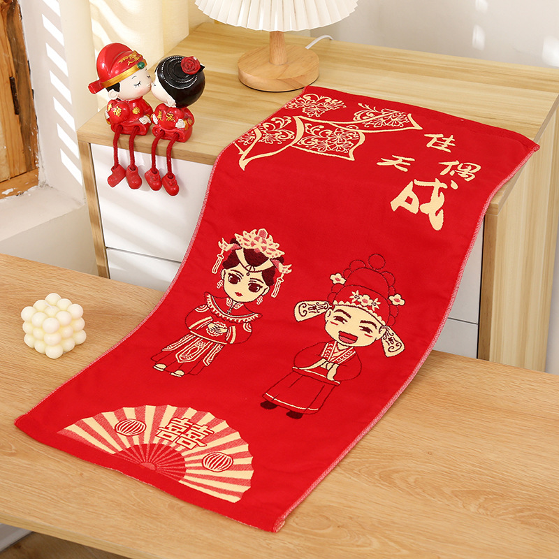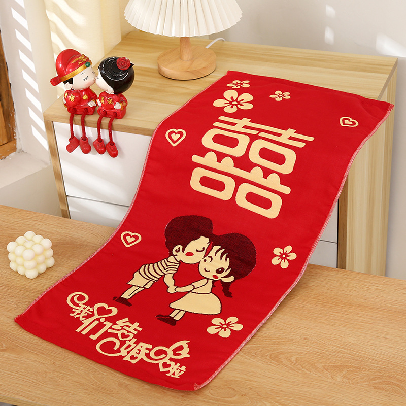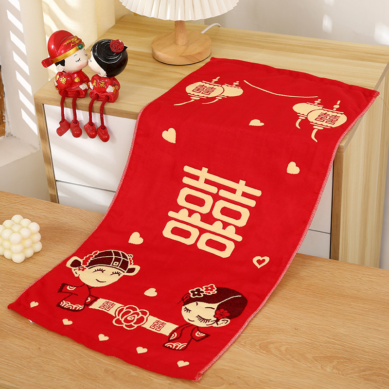 면 4 층 거즈 빨간 만화 창조적 인 커플 타올 손에 손 선물 웨딩 타올 웨딩 타올스토어 가기