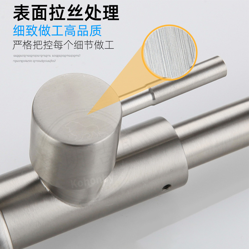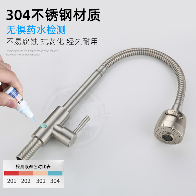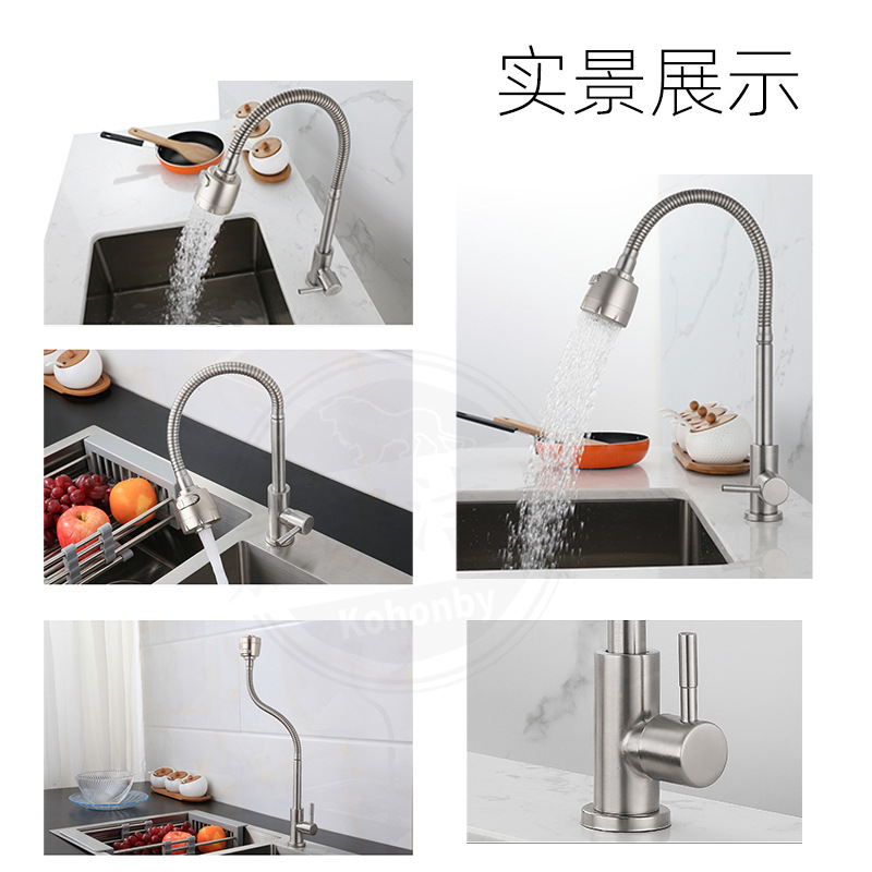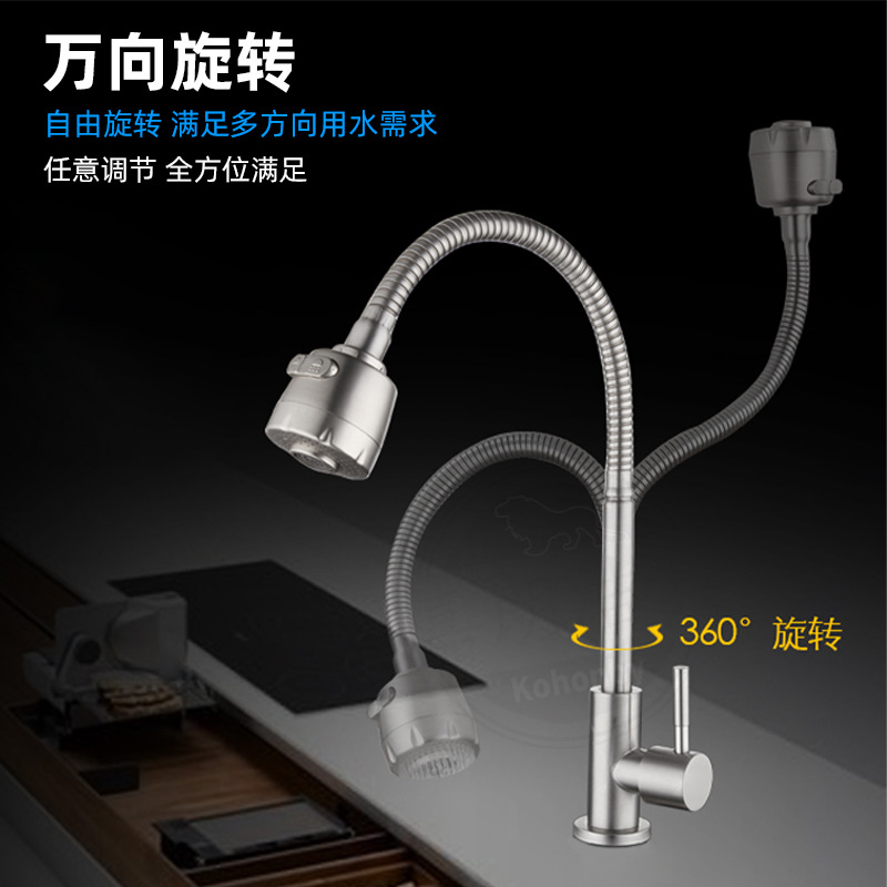 공장 직접 공급 304 스테인레스 스틸 단일 차가운 수직 360 도 회전 범용 튜브 주방 수도꼭지스토어 가기