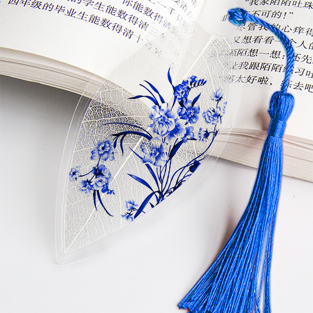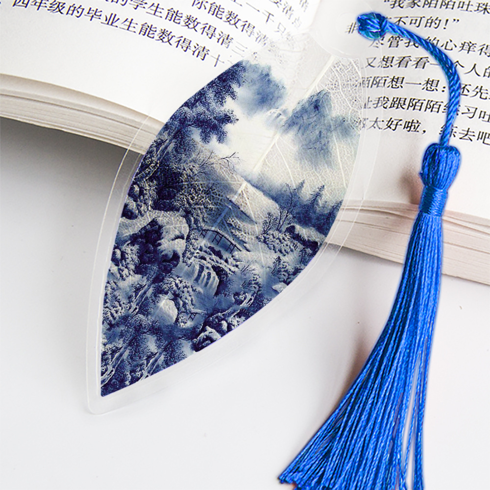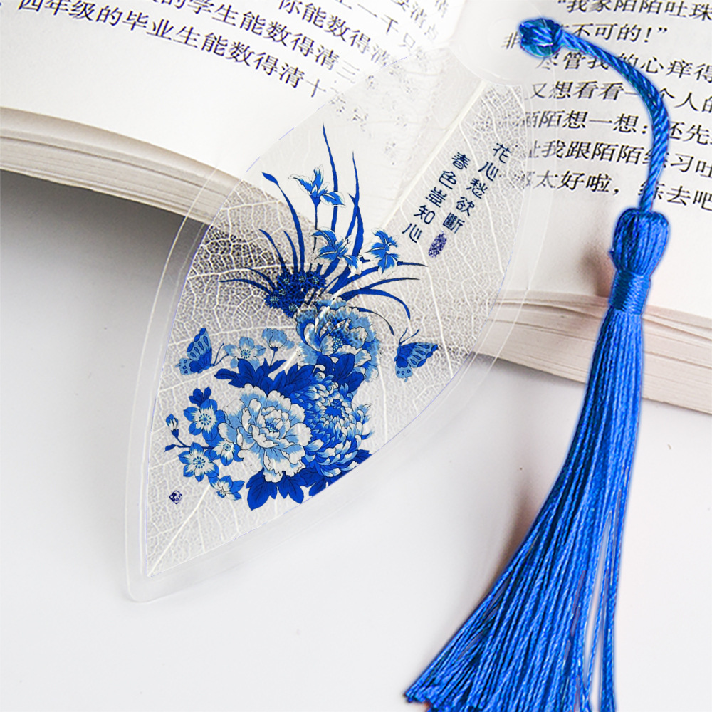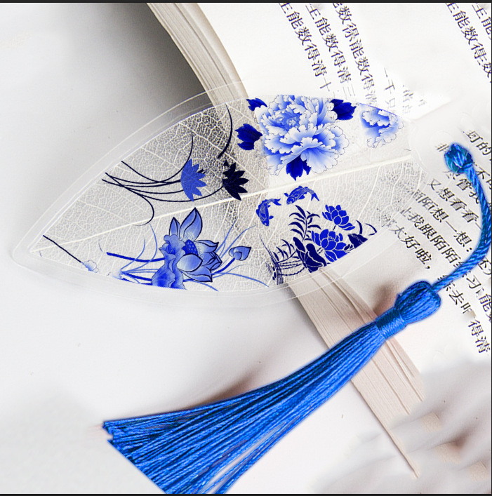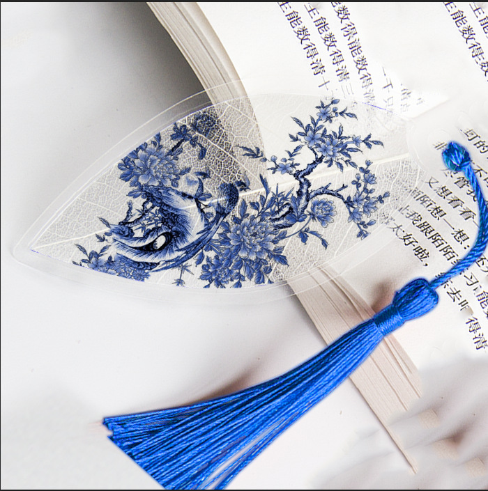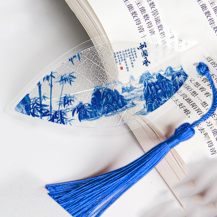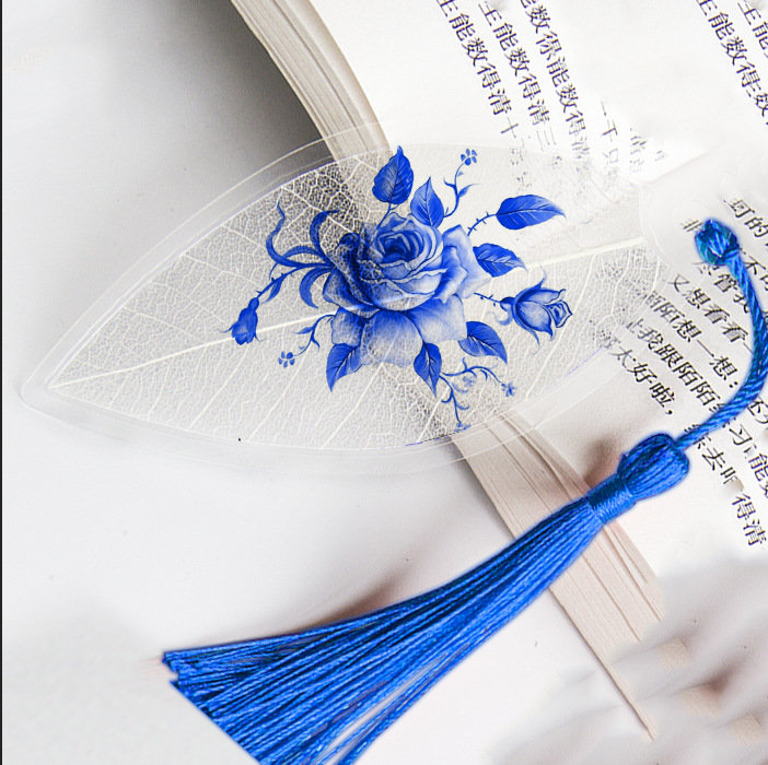 잎 정맥 책갈피 파란색과 흰색 도자기 시리즈스토어 가기