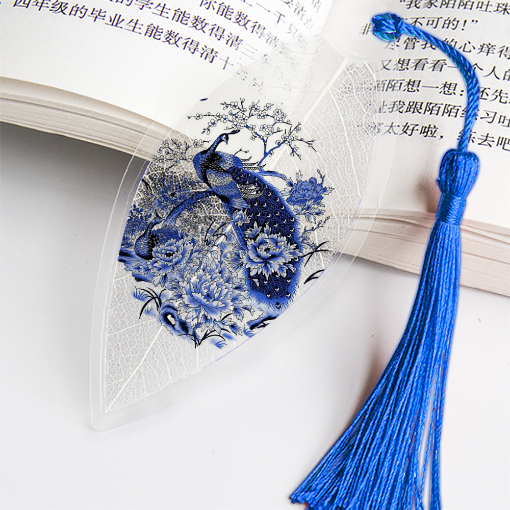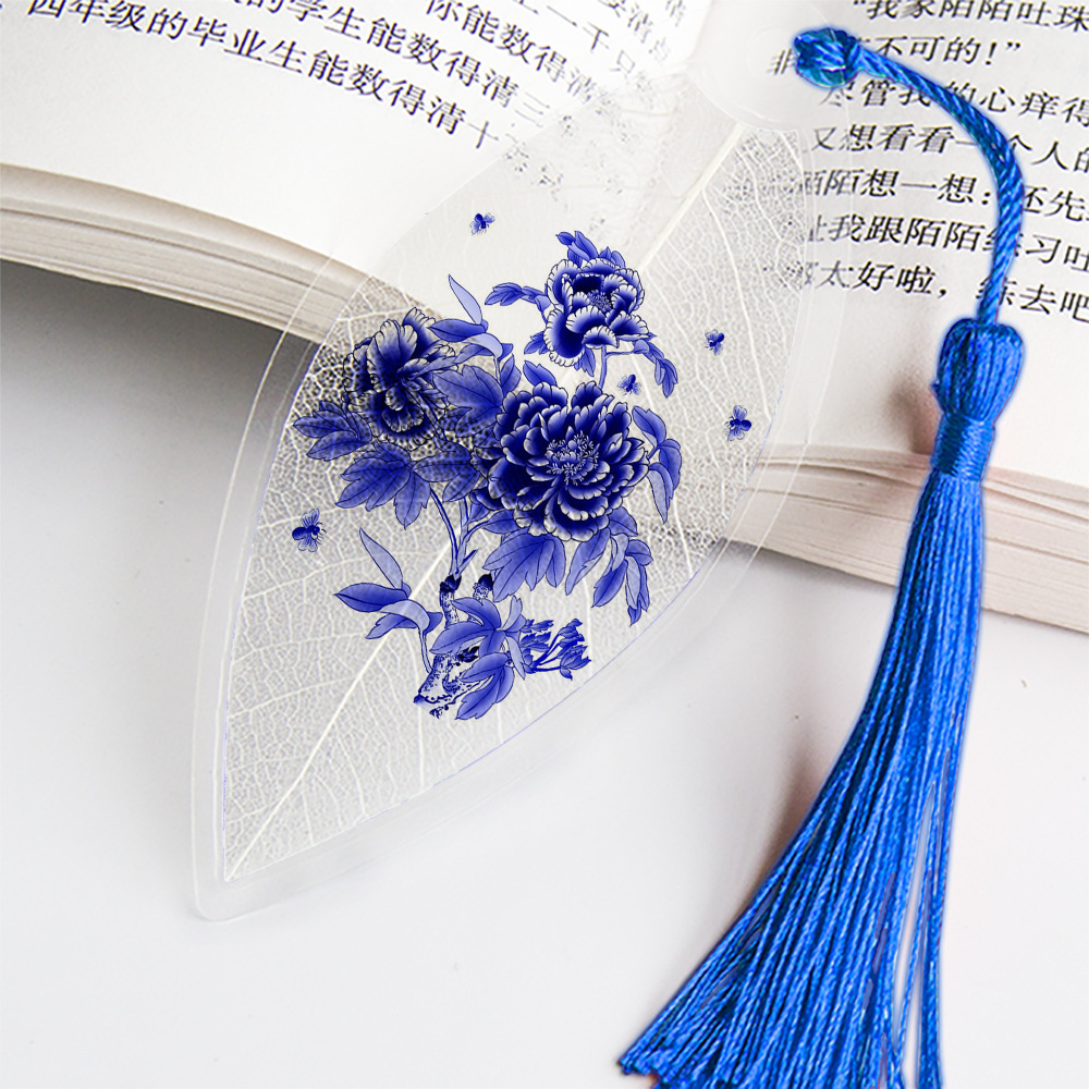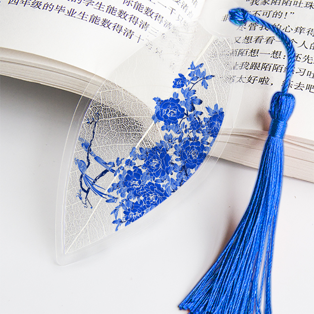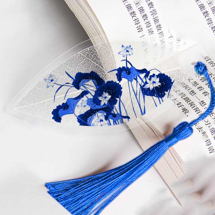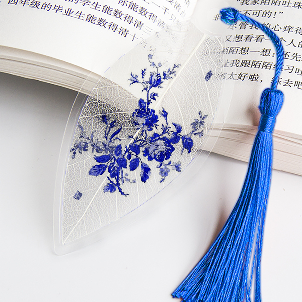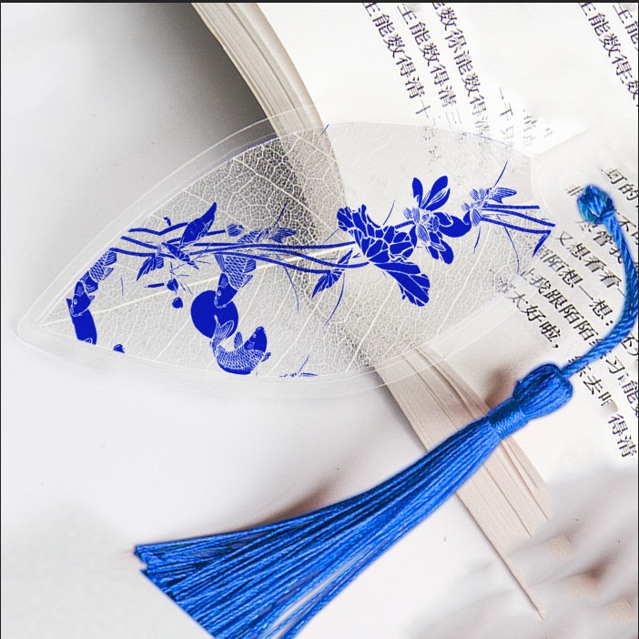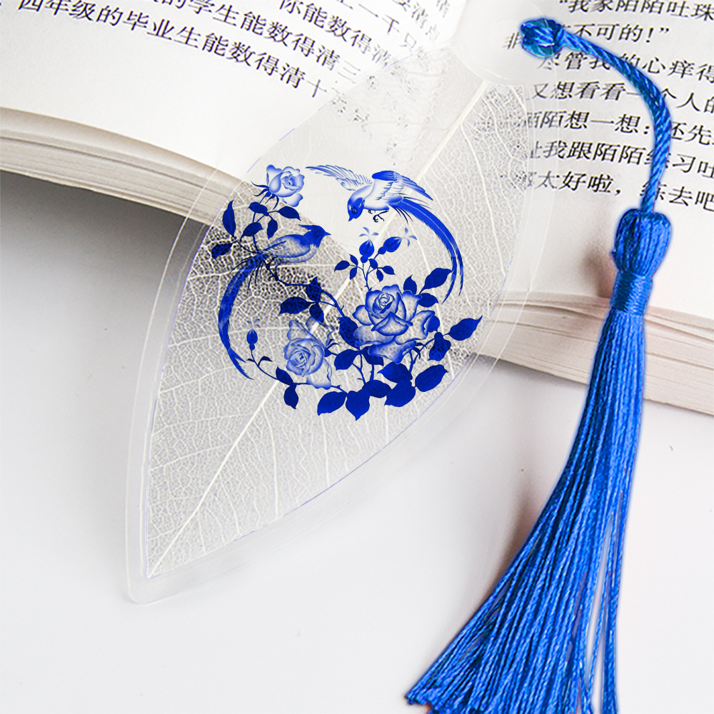 잎 정맥 책갈피 파란색과 흰색 도자기 시리즈스토어 가기