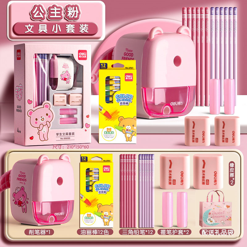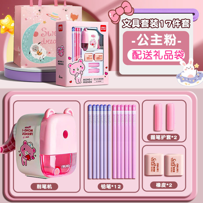 • 선생님 추천/귀여운 곰돌이 핑크+/17종 세트+필통 - 선물 포장 세트+선물 가방