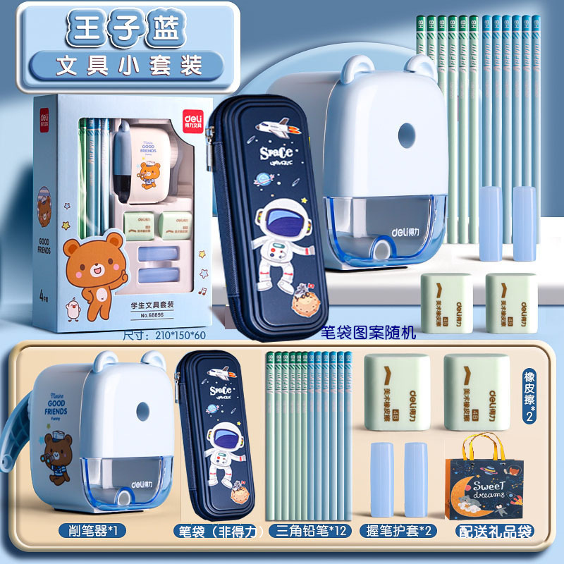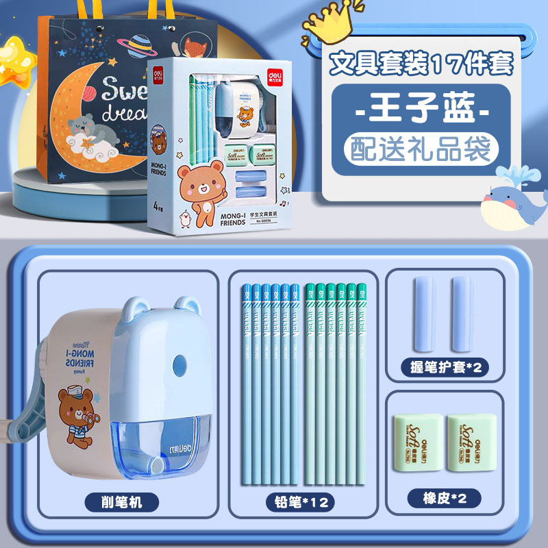 • 선생님 추천/귀여운 곰돌이 블루/17종 세트 + 필통 - 선물 포장 세트 + 선물 가방