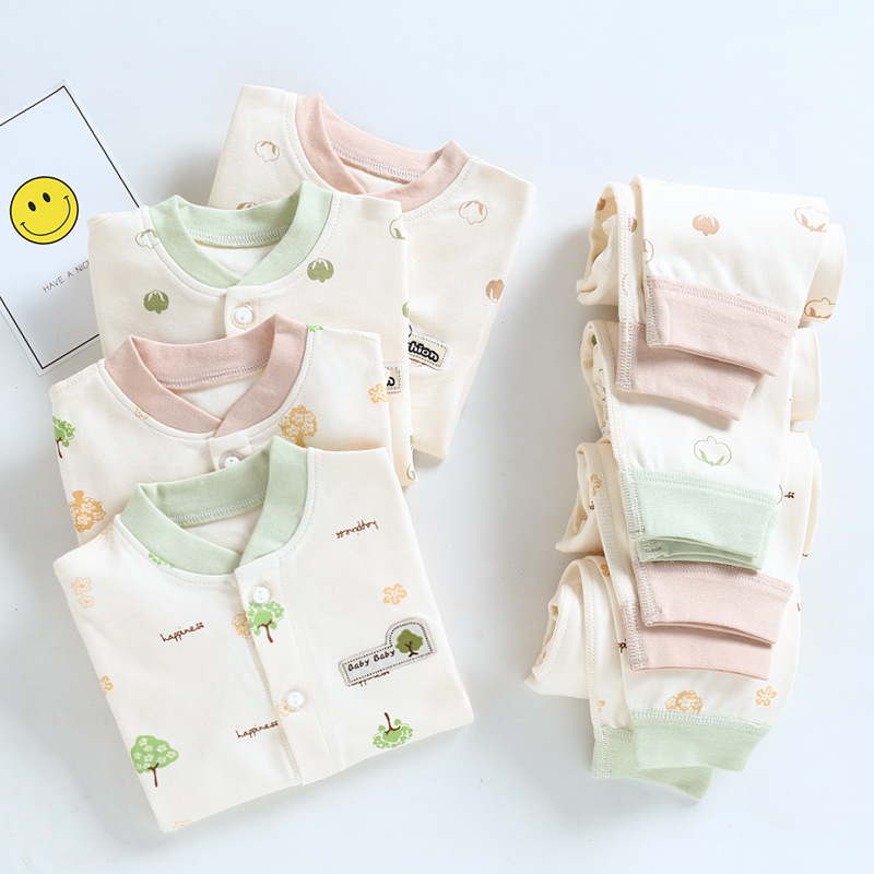 모든 면 뼈없는 어린이 봄과 가을 의류 및 가을 바지 순면 신생아 아기 의류 남여 공용 아기 속옷 어린이 세트스토어 가기