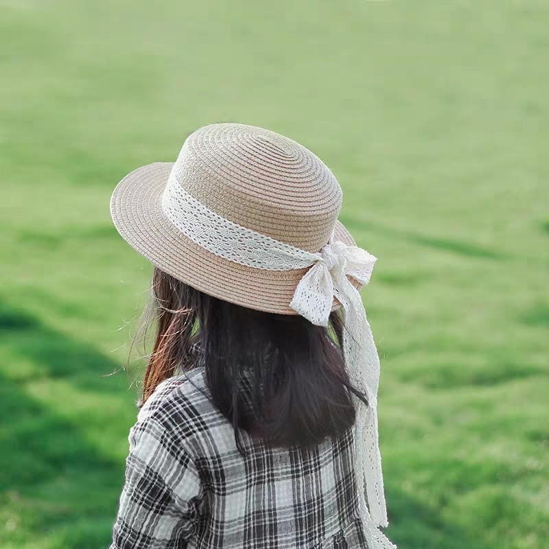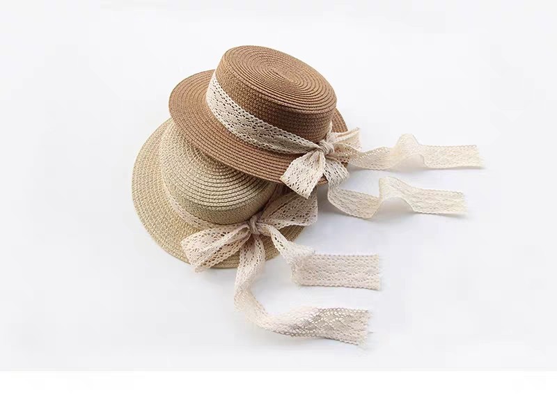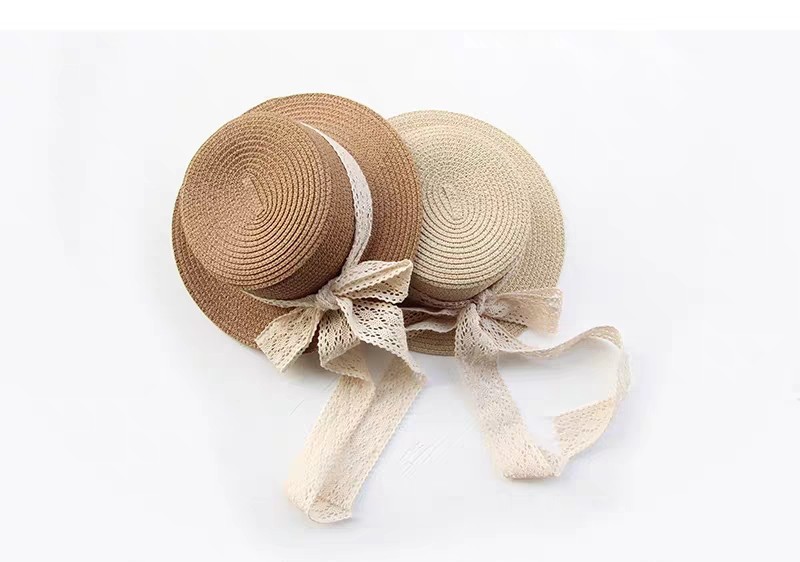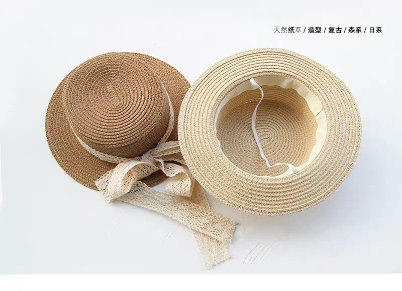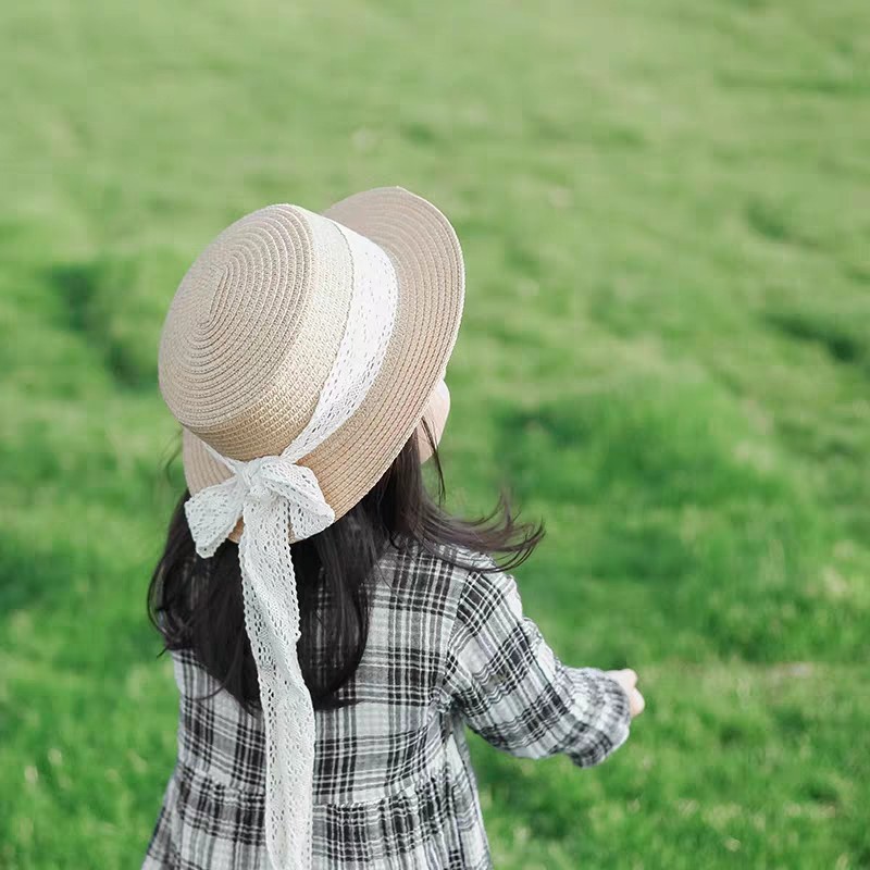 일본 아동 밀짚 모자 레이스 플랫 탑 밀짚 모자 여자 태양 모자 여름 작은 신선한 기질 여자 밀짚 모자 도매스토어 가기