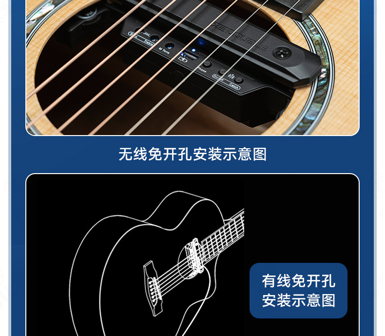 DOUBLE X2 Dabo 픽업 포크 기타 무선 구멍 없는 전문 어쿠스틱 기타 특수 픽업스토어 가기