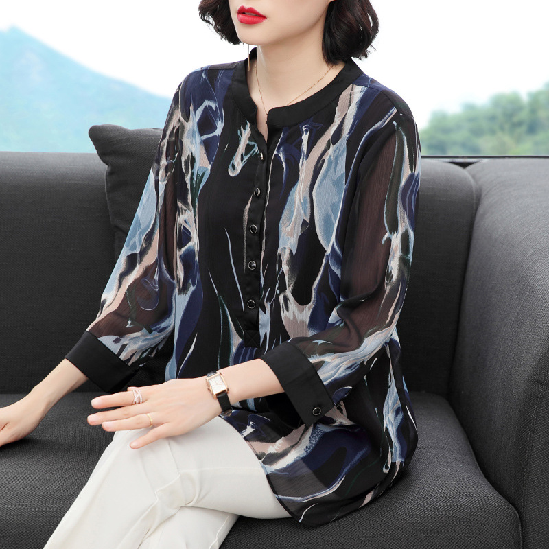 여름 새로운 쉬폰 셔츠 여자의 3 점 소매 느슨한 서양 스타일 셔츠 탑 중간 길이 플러스 사이즈 꽃 셔츠