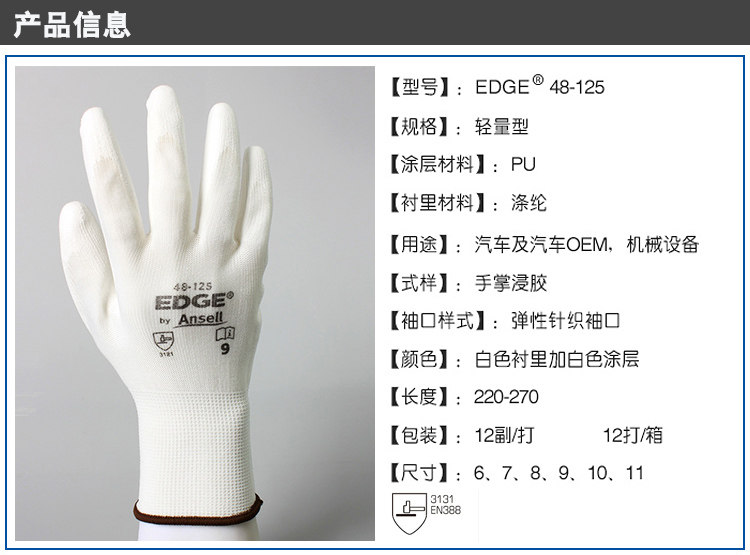앤셀 48-125 작업용 장갑 PU 니트릴 코팅 내마모성 자동차 수리용 미끄럼 방지