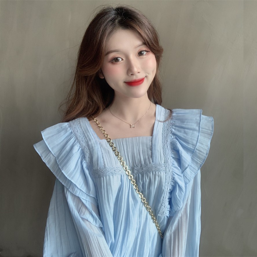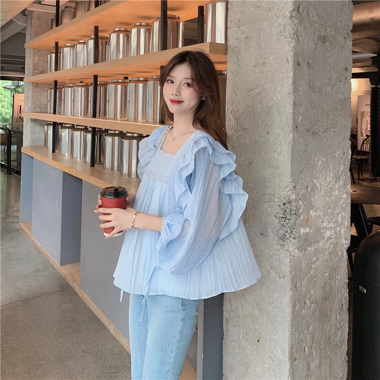 여름 신상 슈퍼 달콤한 러플 셔츠, 패셔너블한 베이비돌 스타일 한국 여성용 상의, 쉬폰 셔츠스토어 가기