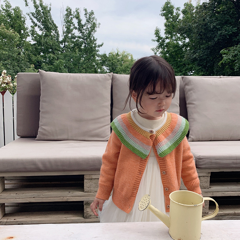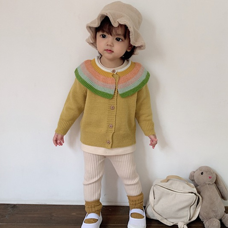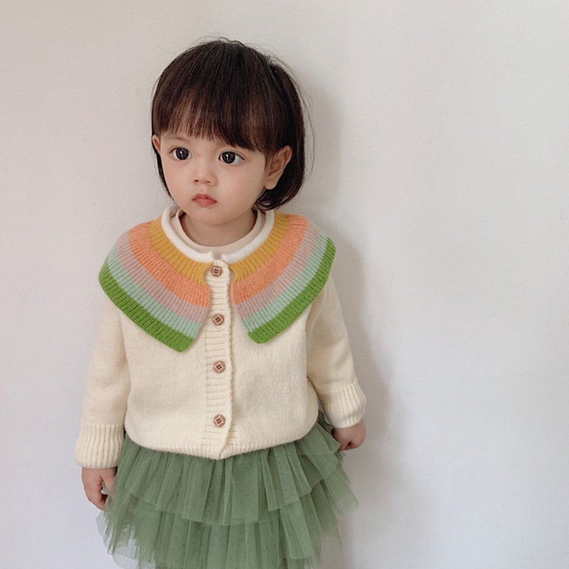 소녀 봄 카디건 코트 2024 새로운 어린이 스웨터 니트 봄과 가을 소녀 무지개 랩 외국 스타일스토어 가기
