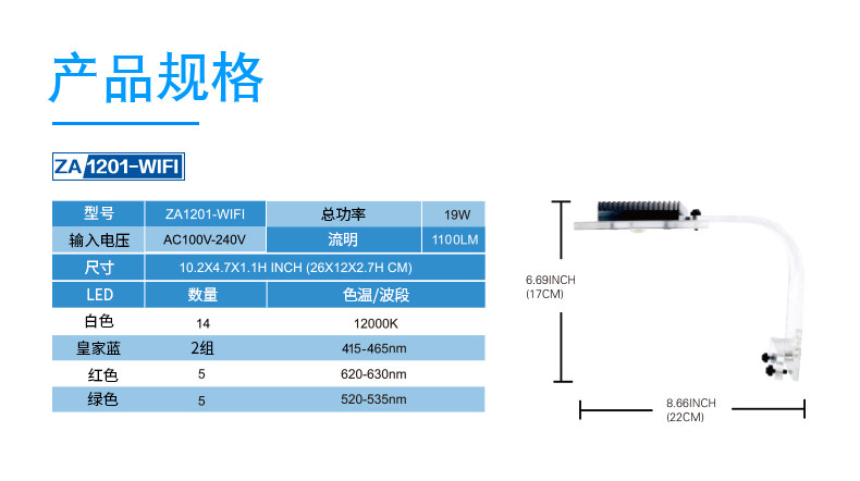 빛 축적 ZA1201Ai 스마트 WIFI 버전 산호 램프 바다 일출 일몰 주도 작은 물고기 탱크 바다 탱크 클립 램프